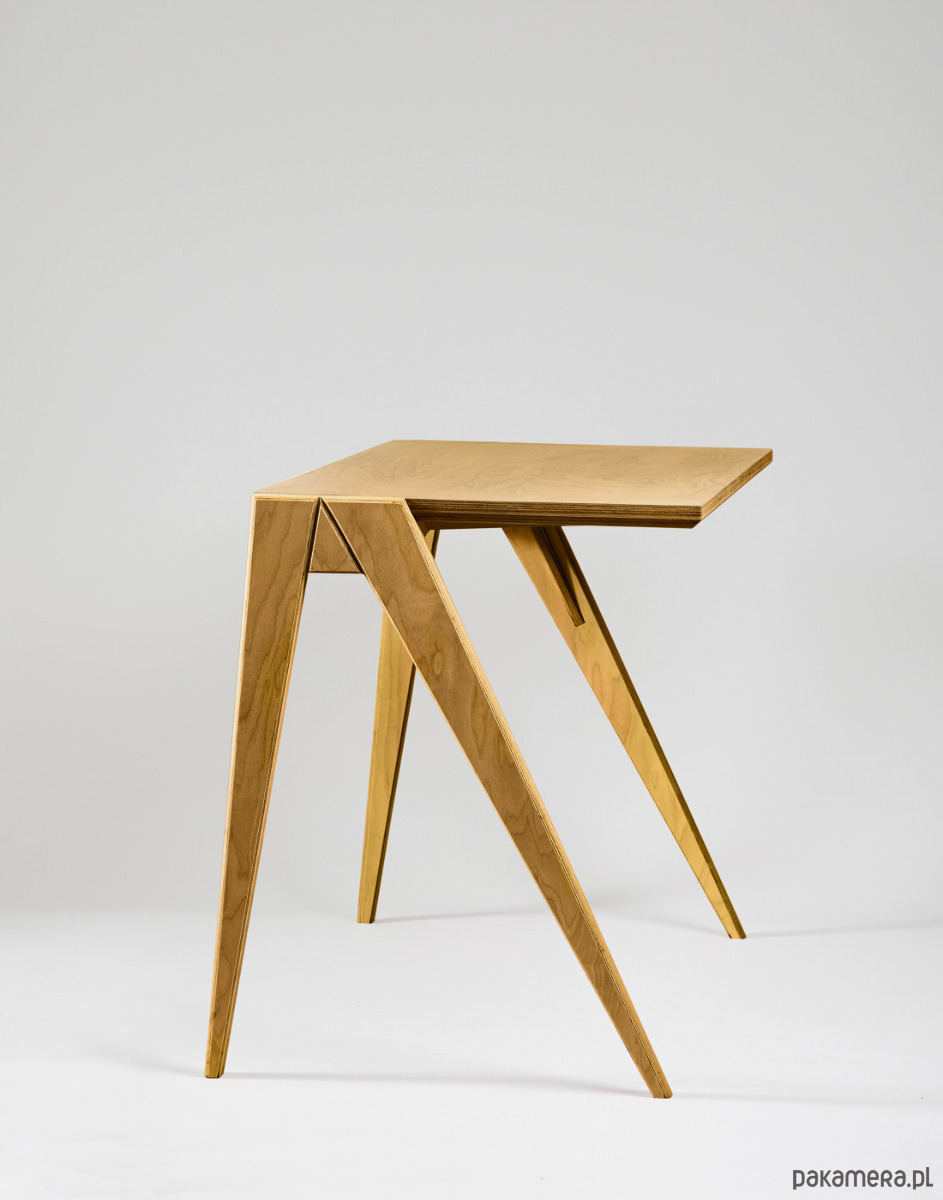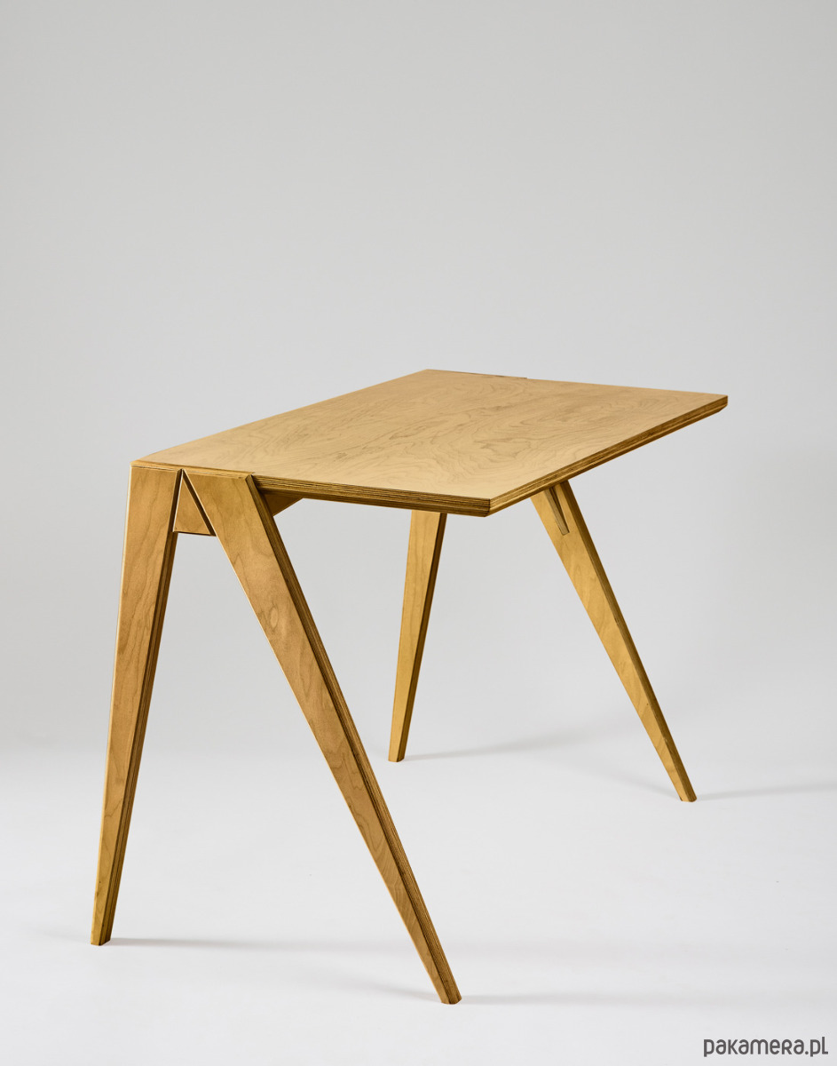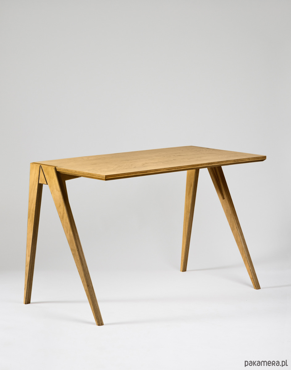 Projekt opiera się o przemyślaną konstrukcję, optymalnie wykorzystującą właściwości sklejki brzozowej. Całość wykończona naturalnym olejowoskiem zapewnia jedwabistą w dotyku powierzchnię. Blat posiada właściwości antystatyczne i łatwo utrzymać go w czystości.
