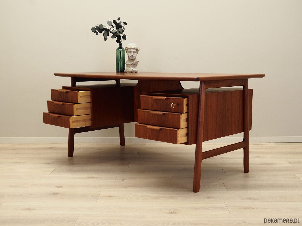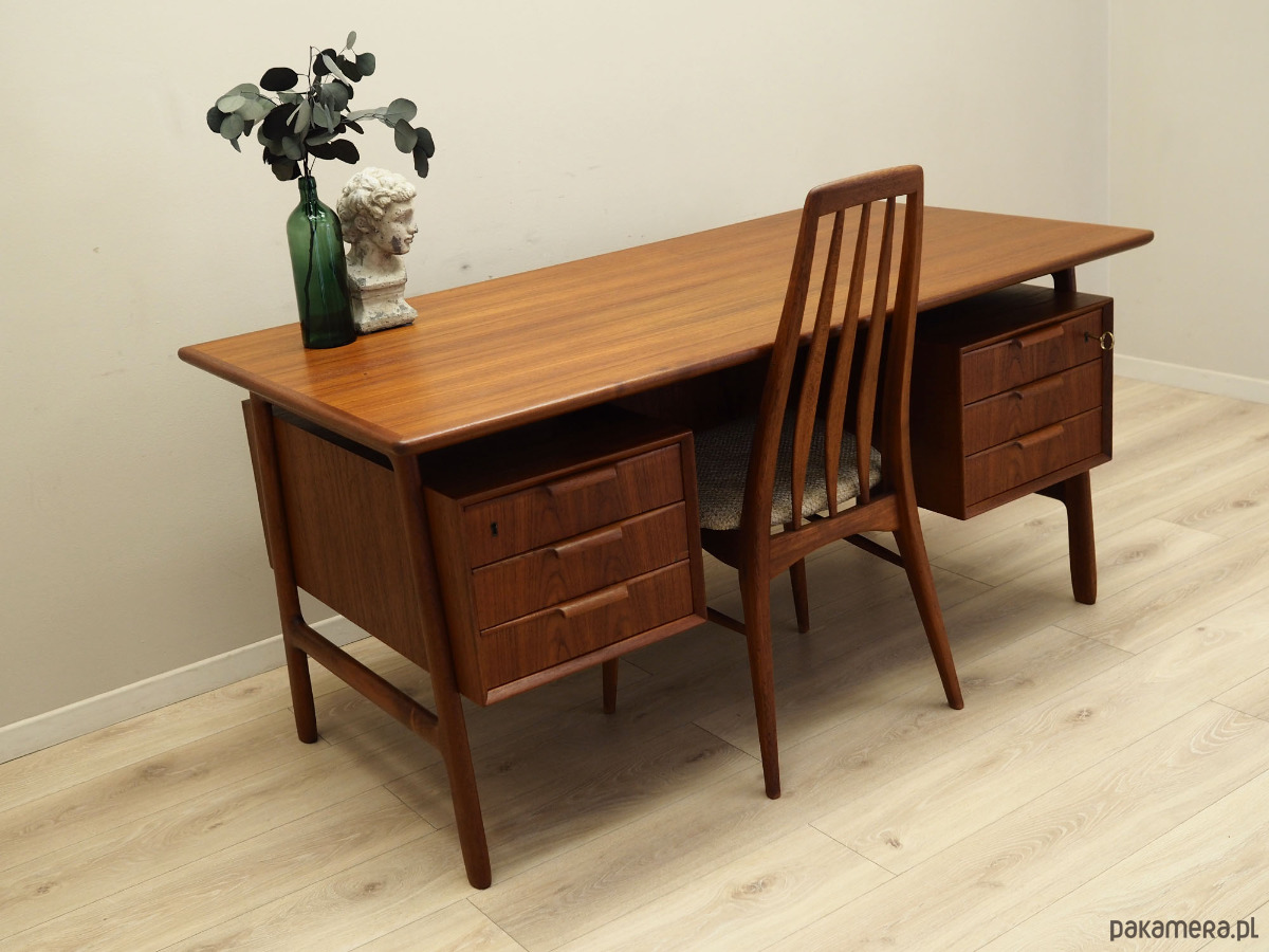 Biurko tekowe, duński design, lata 70, produkcja: Omann Jun