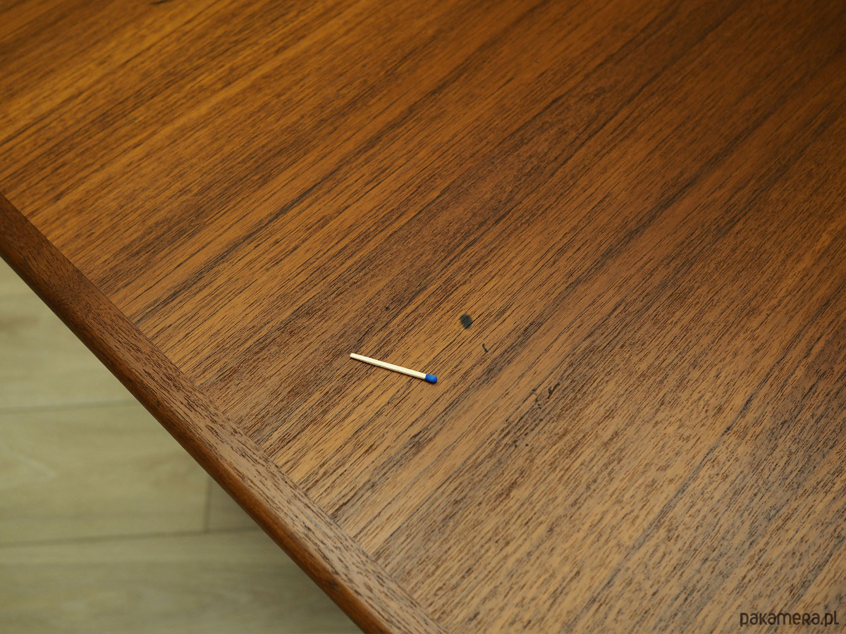 Stan: Powierzchnia biurka po odświeżeniu. Widoczne drobne zarysowania, obicia lub ubytki forniru, które zostały wypełnione. Większe ślady użytkowania zawsze przedstawiamy na zdjęciach. Produkt przygotowany do bezpośredniego użytkowania.