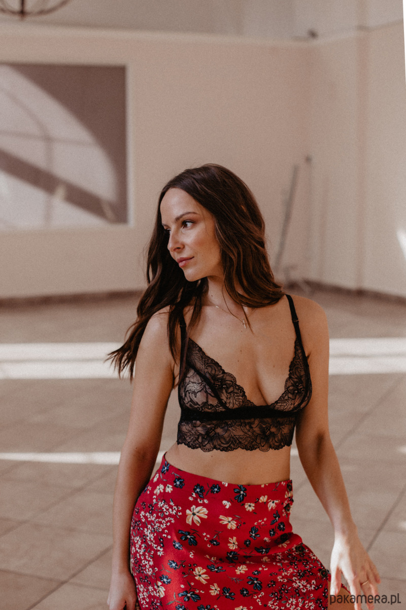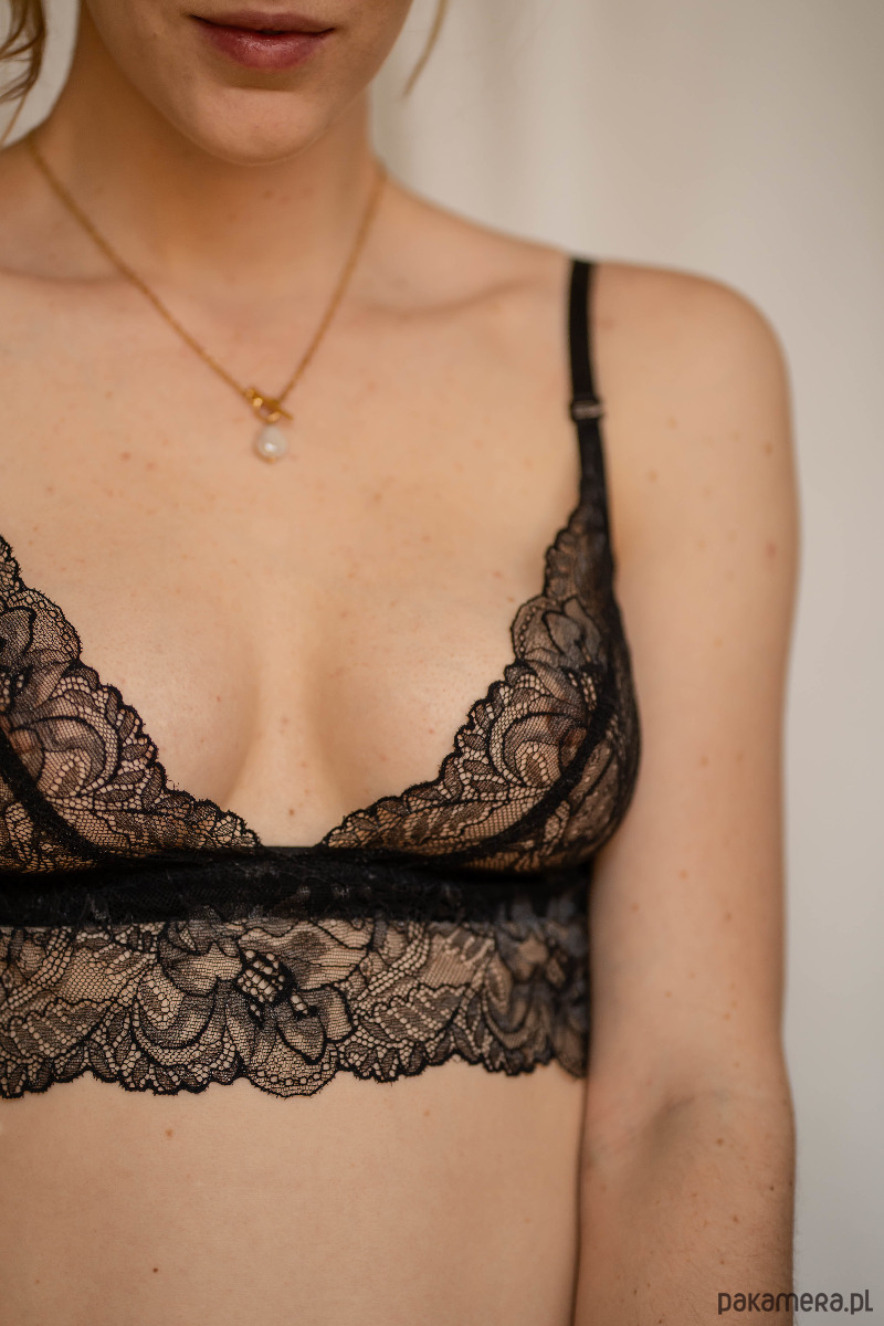 Stanik nie posiada fiszbin ani usztywnienia, zapewnia wygodę i komfort. Koronka, z której jest uszyty jest delikatna i przyjemna dla skóry.
