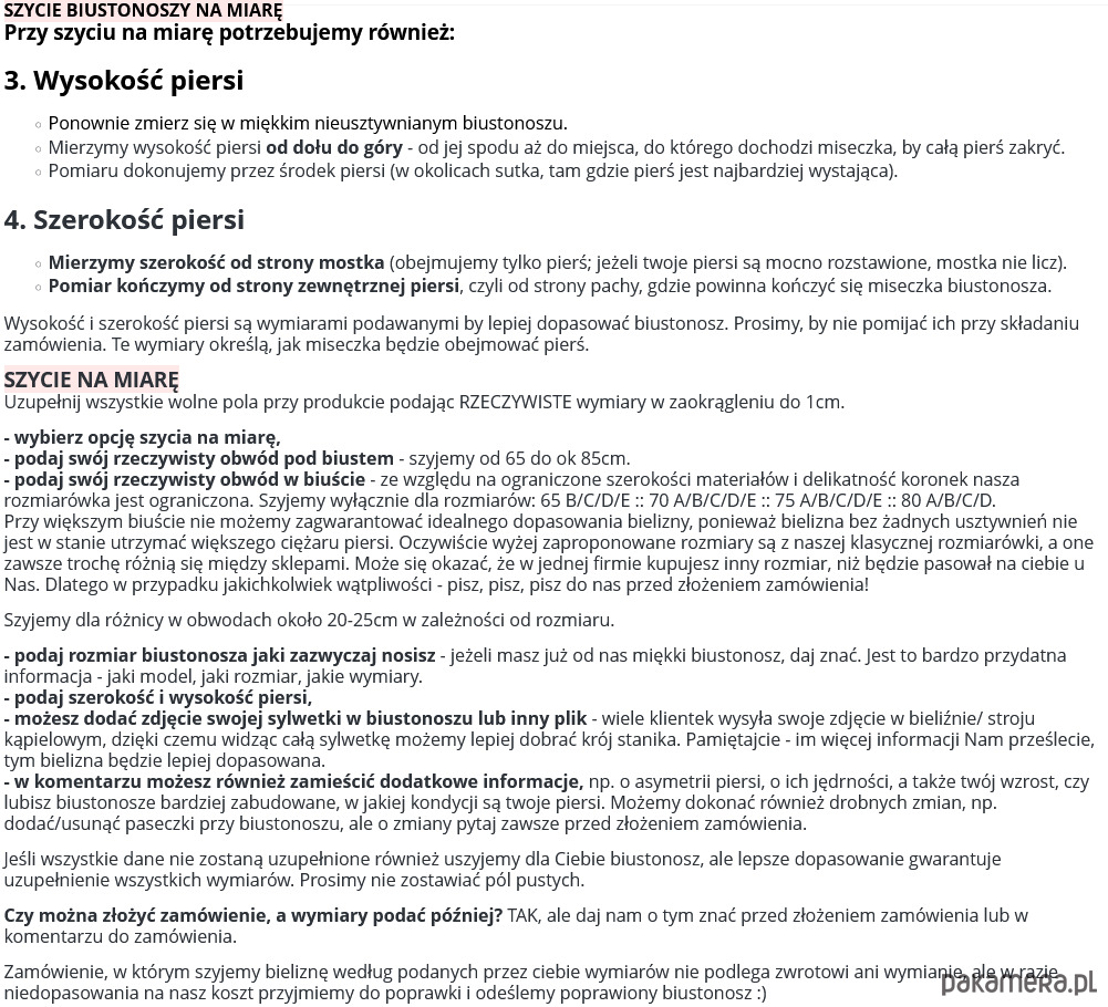 - Naszą rozmiarówkę oraz instrukcję jak dobrać rozmiar biustonosza - jednak jeśli nie jesteś pewna napisz do nas, a pomożemy ci go dopasować.