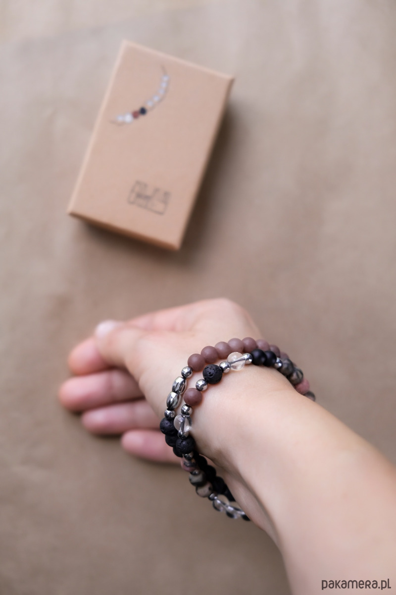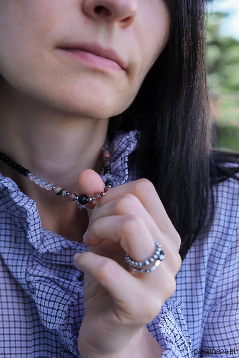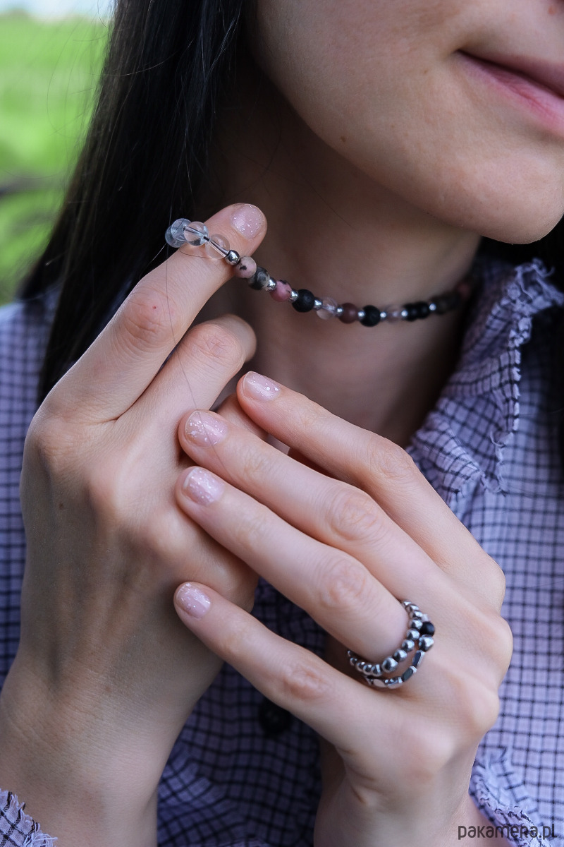 Kolory? Szykowne – czarny, przezroczysty, srebrny i delikatne pastelowe róże. To biżuteria, która przyciąga wzrok i intryguje. Obserwowanie spojrzeń otoczenia, kiedy go nosisz, to frajda sama w sobie.