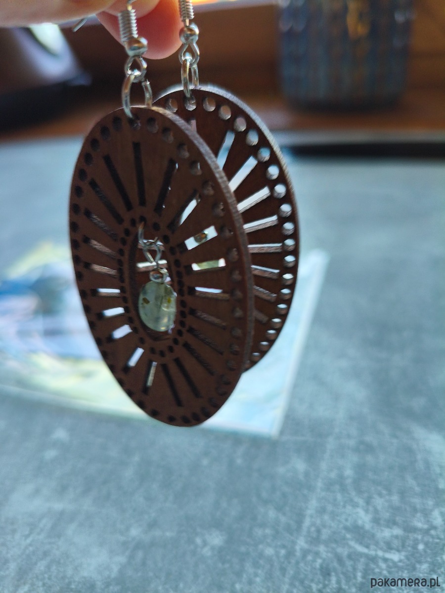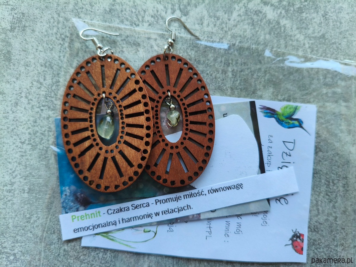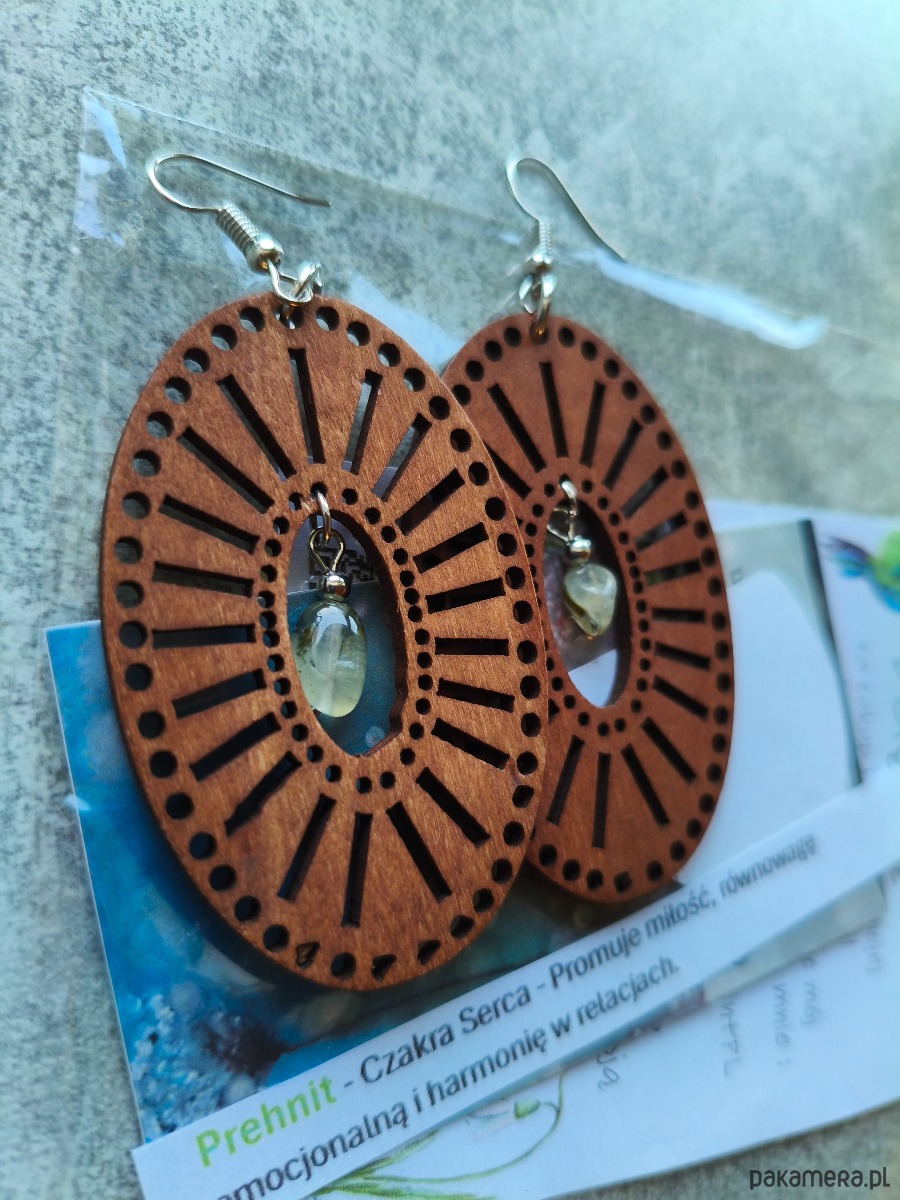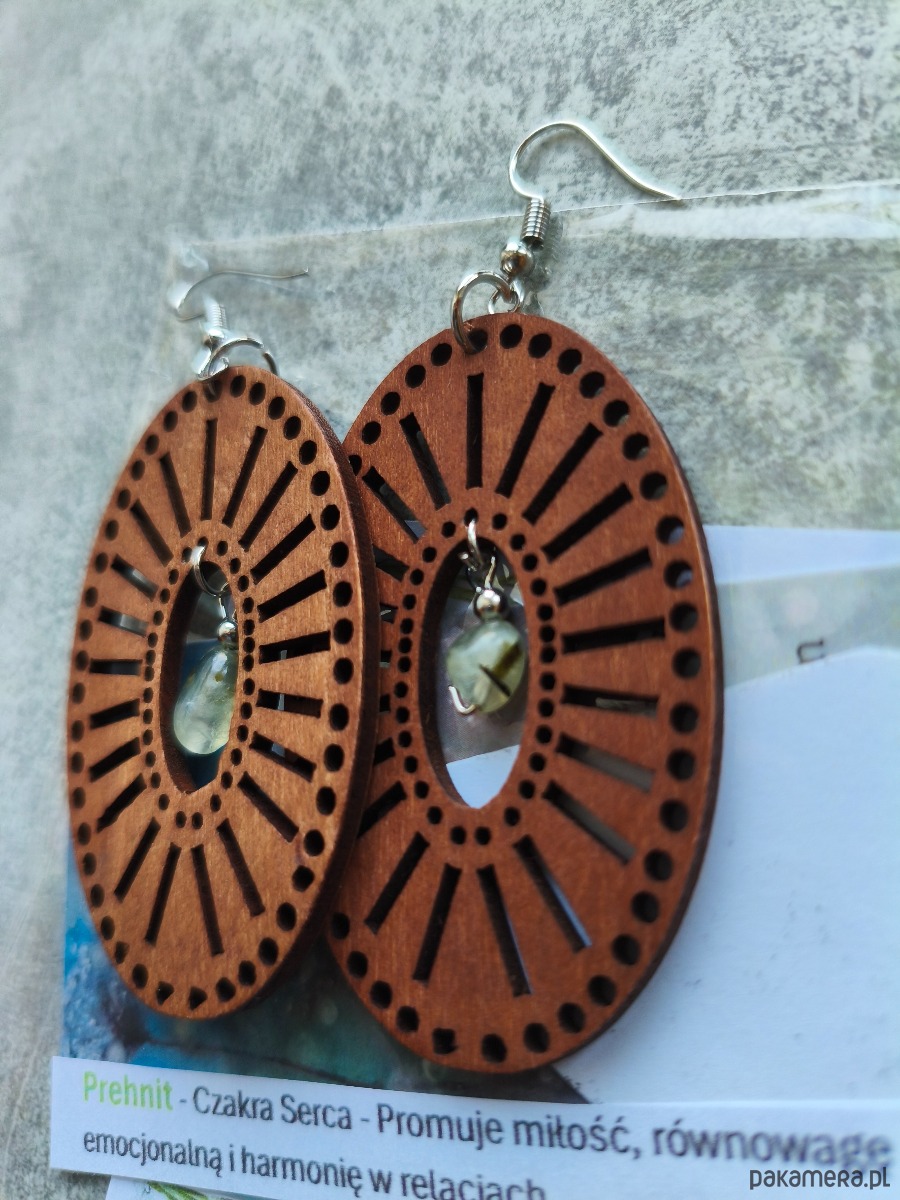 Przedmiotem aukcji są unikatowe, ręcznie wykonane kolczyki, które łączą naturalne piękno drewna z subtelną energią kamieni.