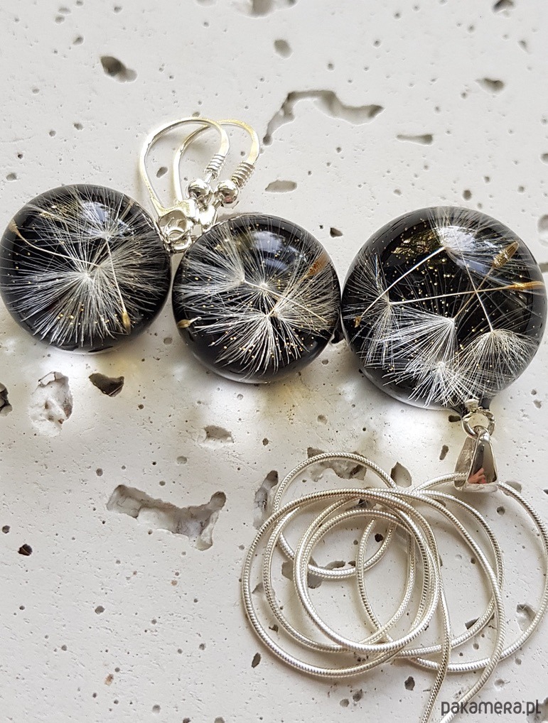 Wyjątkowy komplet biżuterii z żywicy - wisior i kolczyki w których na zawsze zatopiłam delikatne kwiatuszki. Ten wyjątkowy zestaw minimalistyczny zapakowany jest w eleganckie pudełko jubilerskie. Unikatowa biżuteria autorska to doskonały prezent dla bliskiej osoby.
