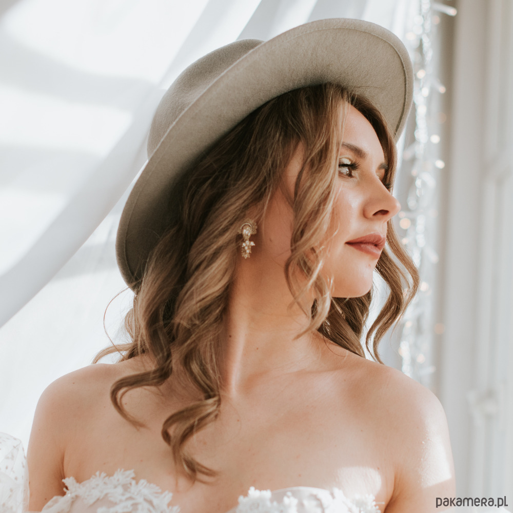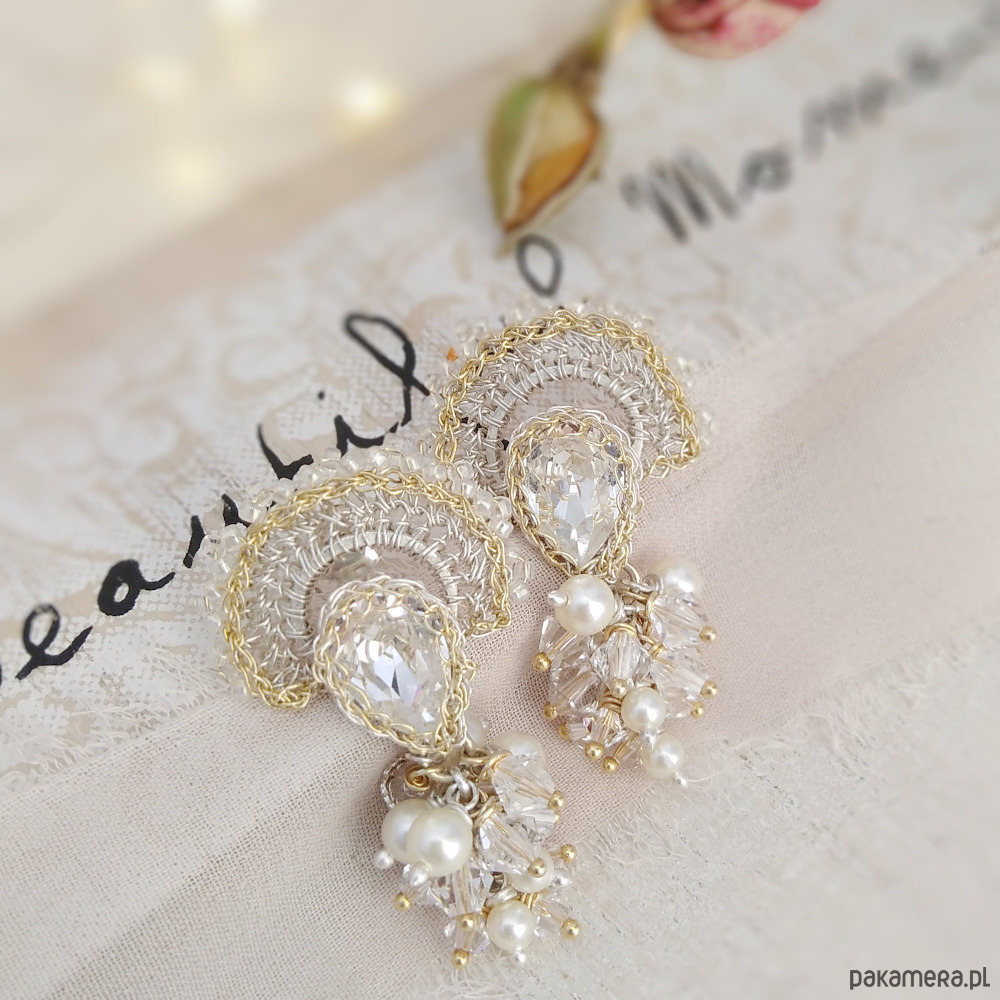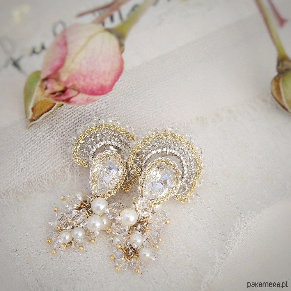 Nietuzinkowe kolczyki ślubne Ordalica to propozycja dla Panien Młodych ceniących biżuterię raczej niewielkich rozmiarów. Połączenie klasycznego jasnego srebra ze srebrem złoconym uzupełnione o mieszankę iskrzących kryształów i satynowych pereł podkreśli unikatowość stylizacji ślubnej.