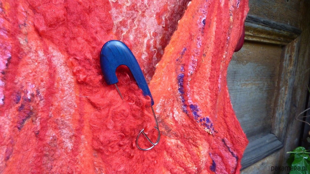 Agrafki wykonane z różnych gatunków drewna. W różnych kolorach, czarnym, czerwonym, zielonym, niebieskim lub niewyraźnym kolorze drewna.