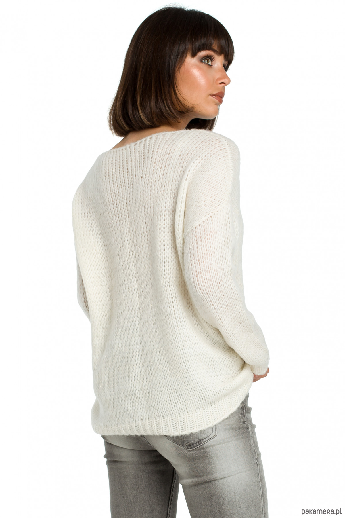 OPIS PRODUKTU: Delikatny sweter z dekoltem w serek, opuszczoną linią rękawa i ozdobną złotą nitką będzie eleganckim dodatkiem do spodni i spódnic nie tylko na wieczór.