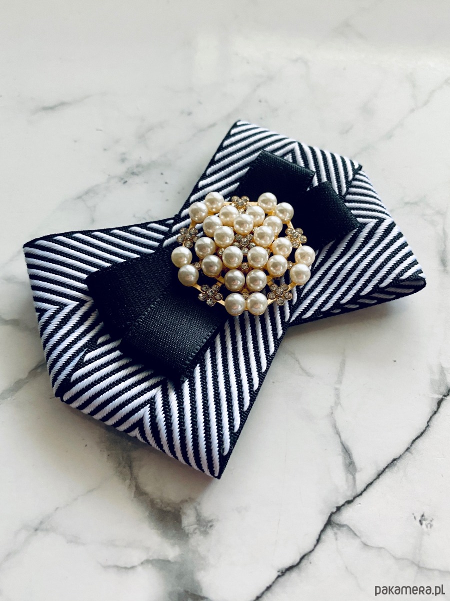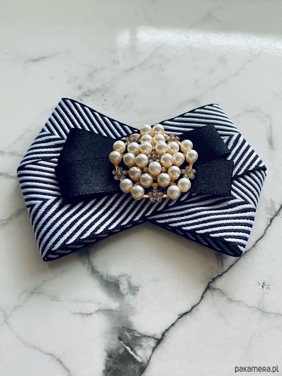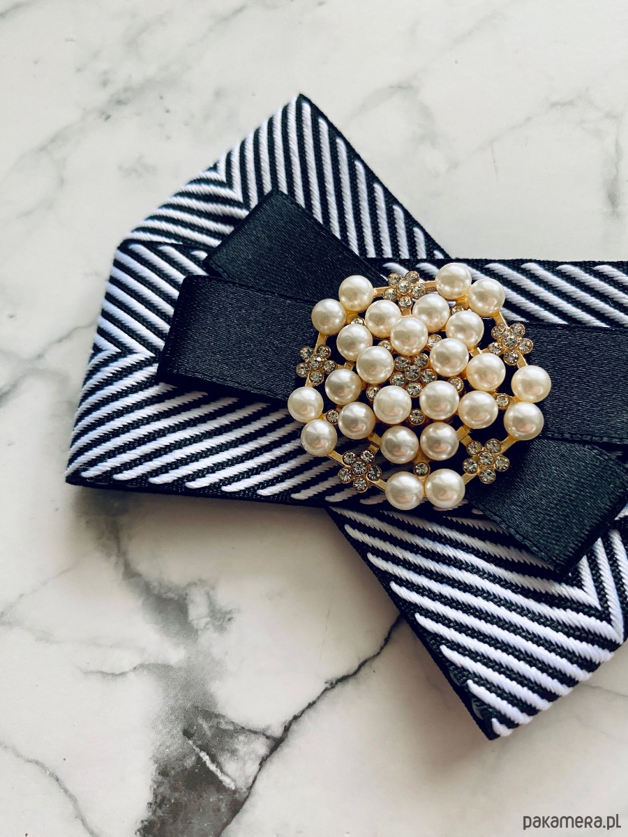 Broszka wykonana z wysokiej jakości taśm i dodatków.