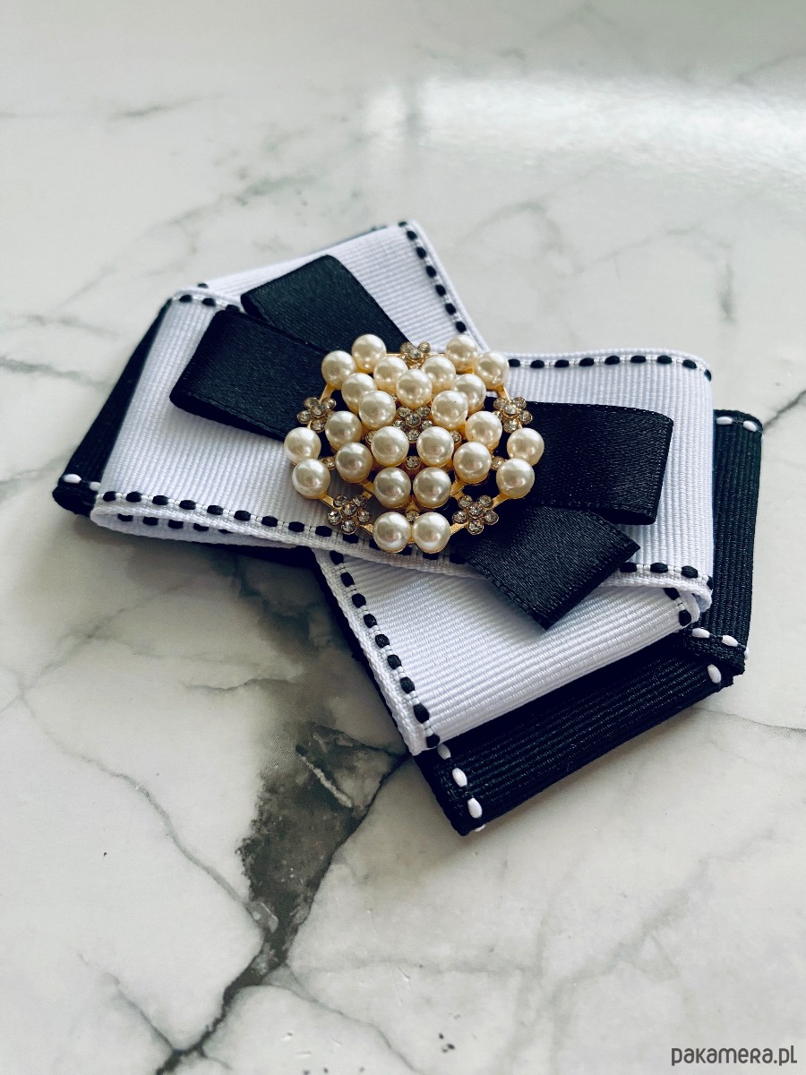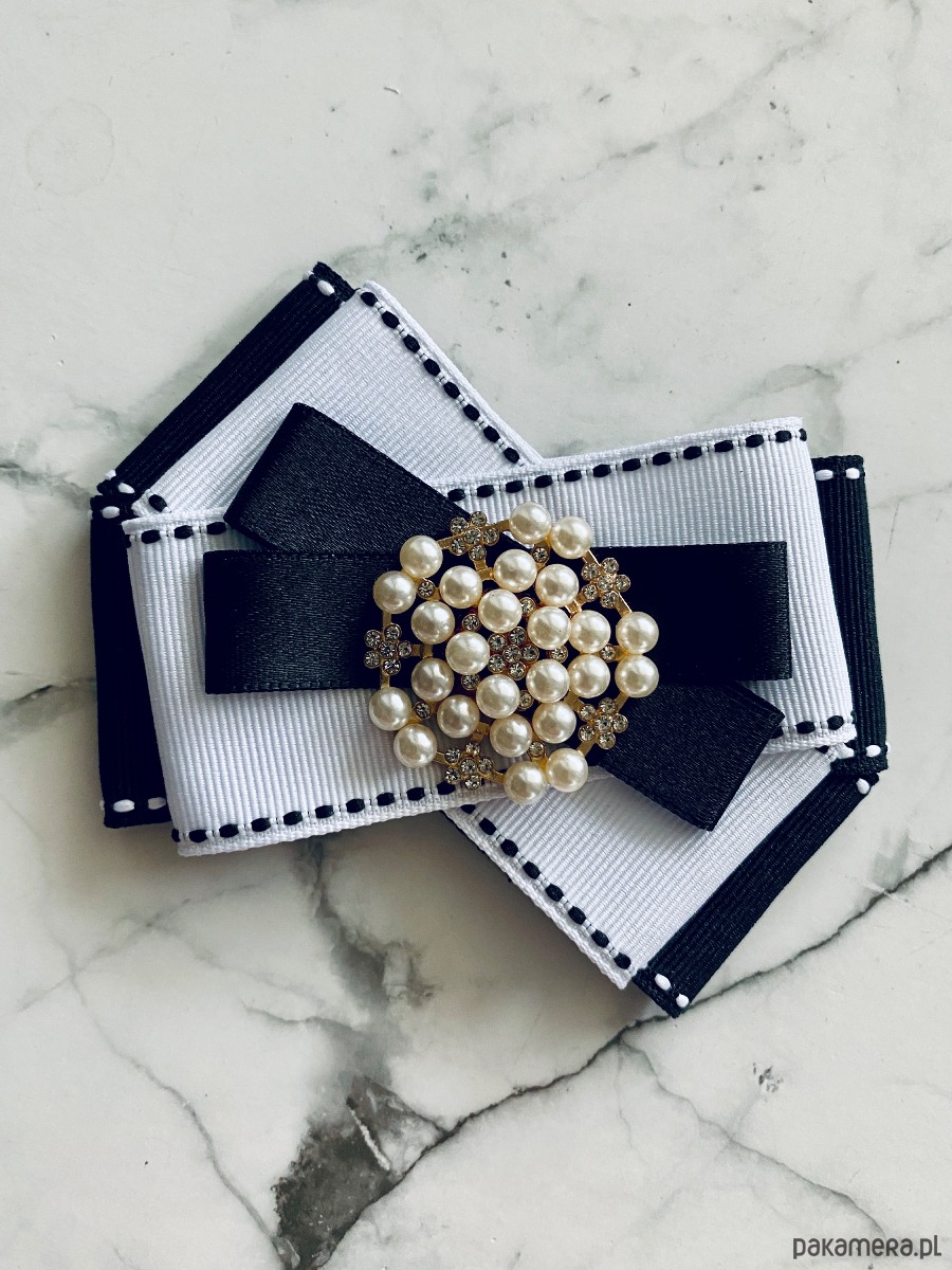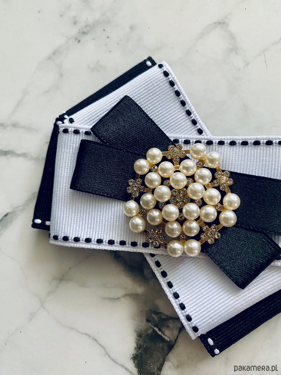 Broszka wykonana z wysokiej jakości taśm i dodatków.