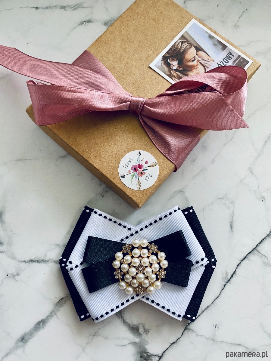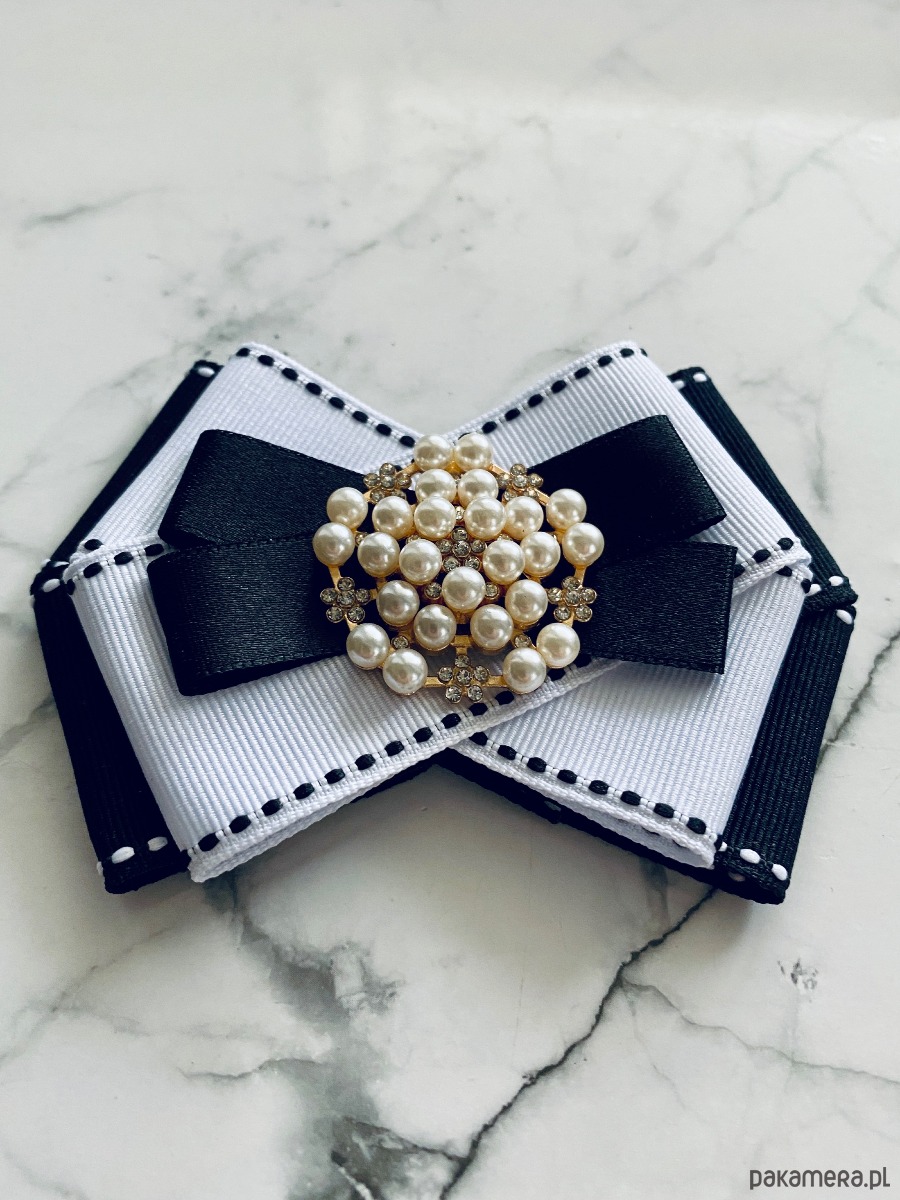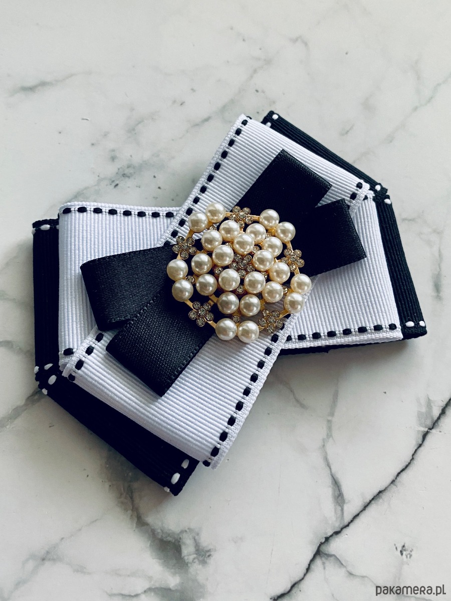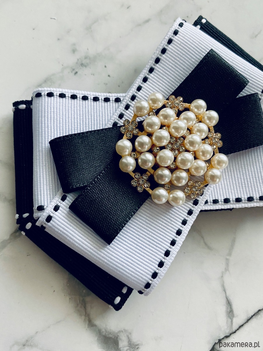 Broszka wykonana z wysokiej jakości taśm i dodatków.