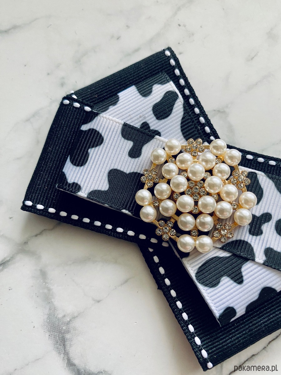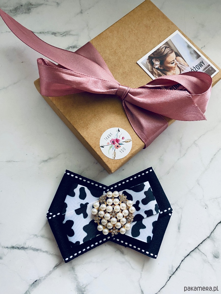 Broszka wykonana z wysokiej jakości taśm i dodatków.