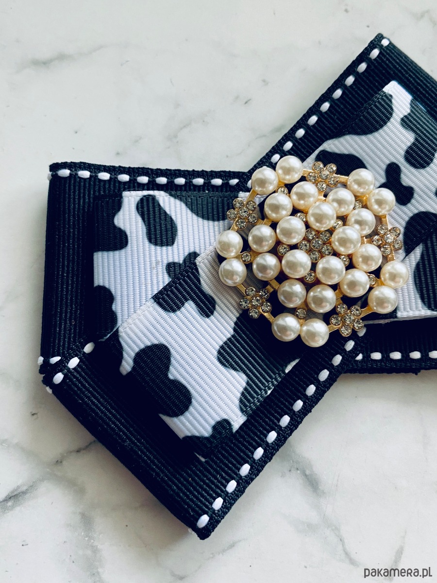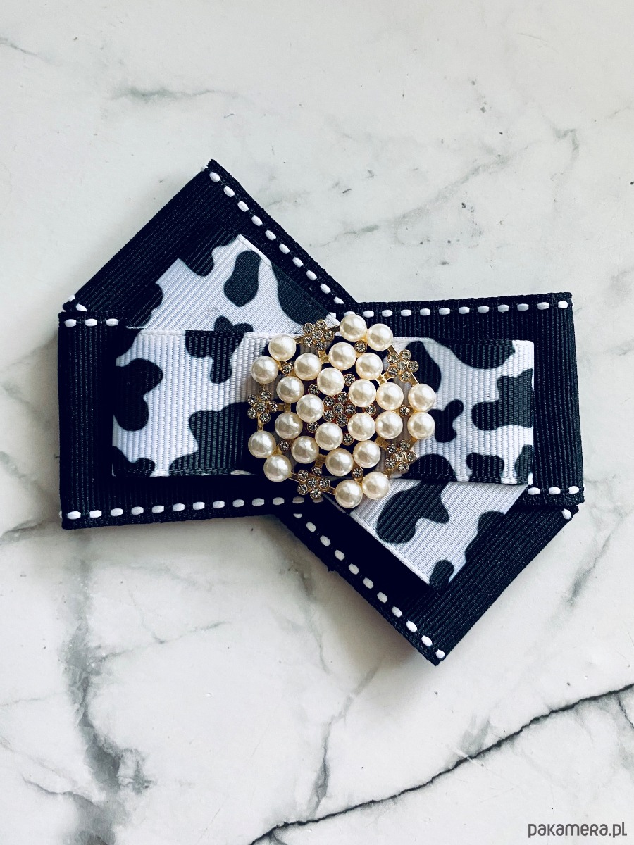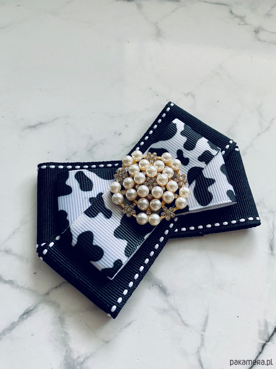 Broszka wykonana z wysokiej jakości taśm i dodatków.