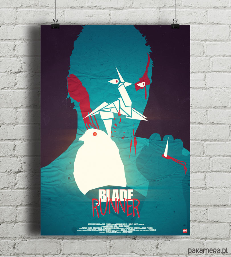 Plakat z autorską grafiką inspirowany filmem "Łowca Androidów" (Blade Runner) w reżyserii Ridleya Scotta.