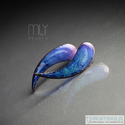 Ceramiczne podłużne kolczyki, ręcznie wykonane z delikatnej gliny kamionkowej, jednostronnie szkliwione mieszanką błękitnych i fioletowych szkliw z efektem plamek, tył matowy na antyalergicznych sztyftach w kolorze srebrnym.długość ok 2,8cm. Polecam