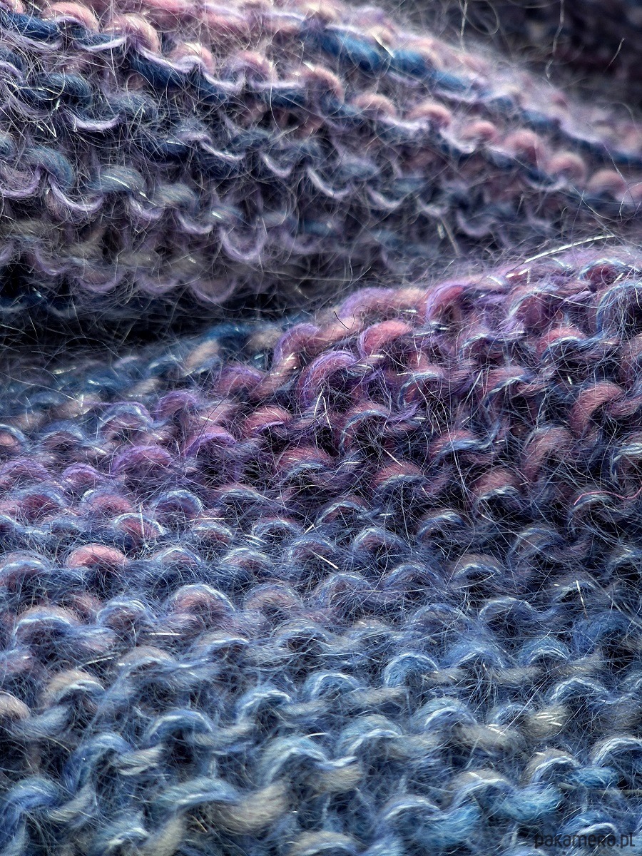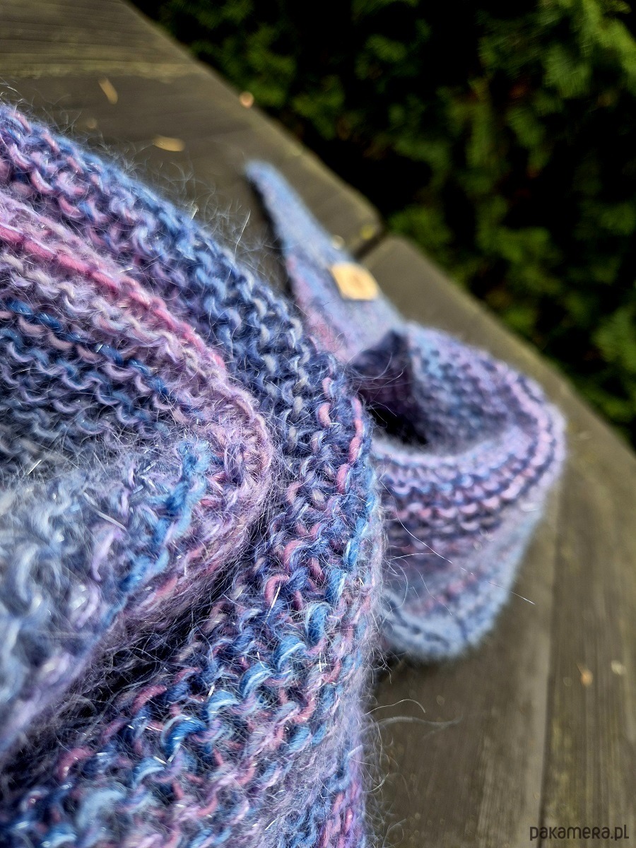 Coś pod szyję, chustka/ szal na chłodne dni. Wykonanie ręczne- na drutach. Fantastyczna, miękka i delikatnie puszysta połyskująca srebrzystym włoskiem.