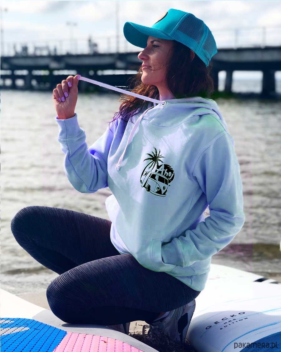 Błękitna bluza damska z kapturem Ahoj Przygodo