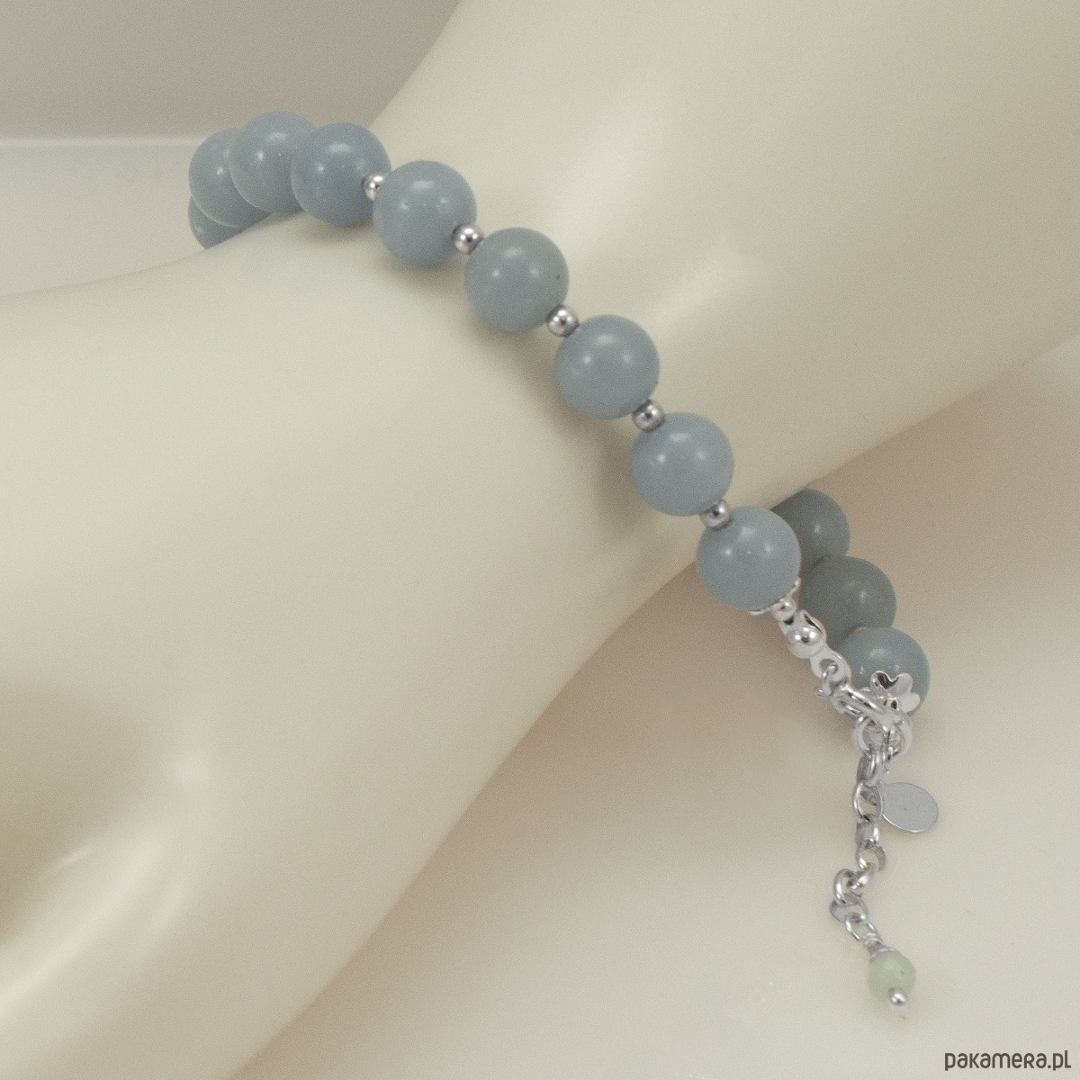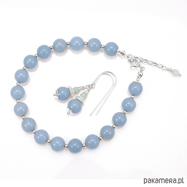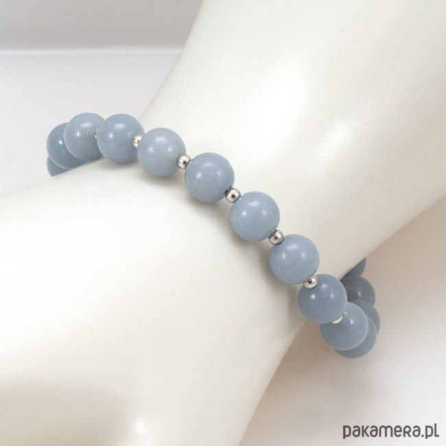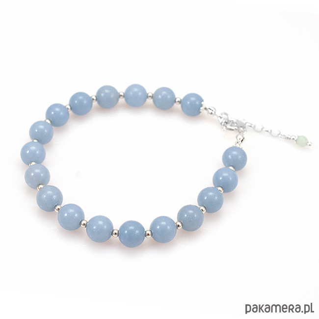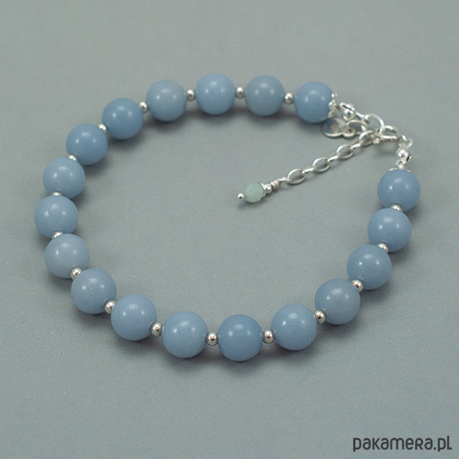 Śliczna bransoletka ze srebra z błękitnym angelitem (8mm).