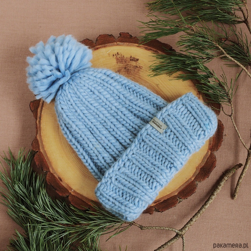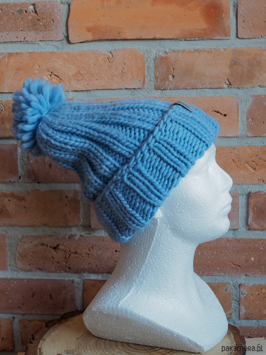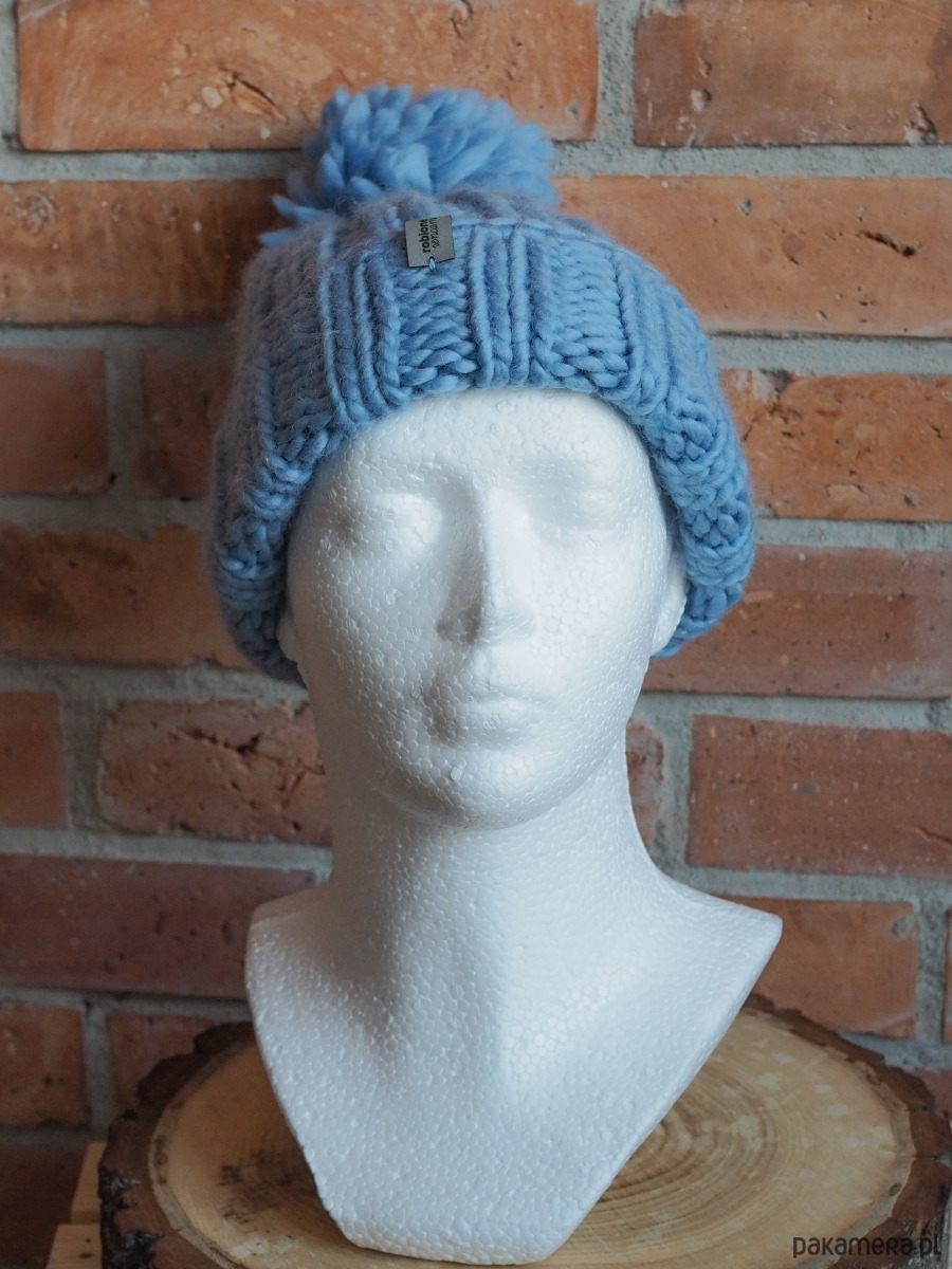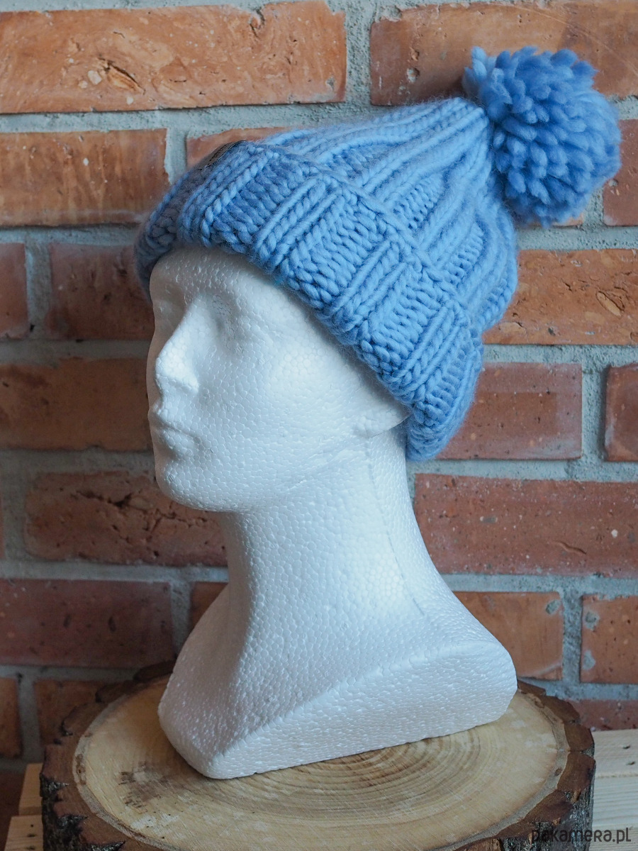 Ciepła czapka ręcznie robiona na drutach, z cieplutkiej wełny merino: