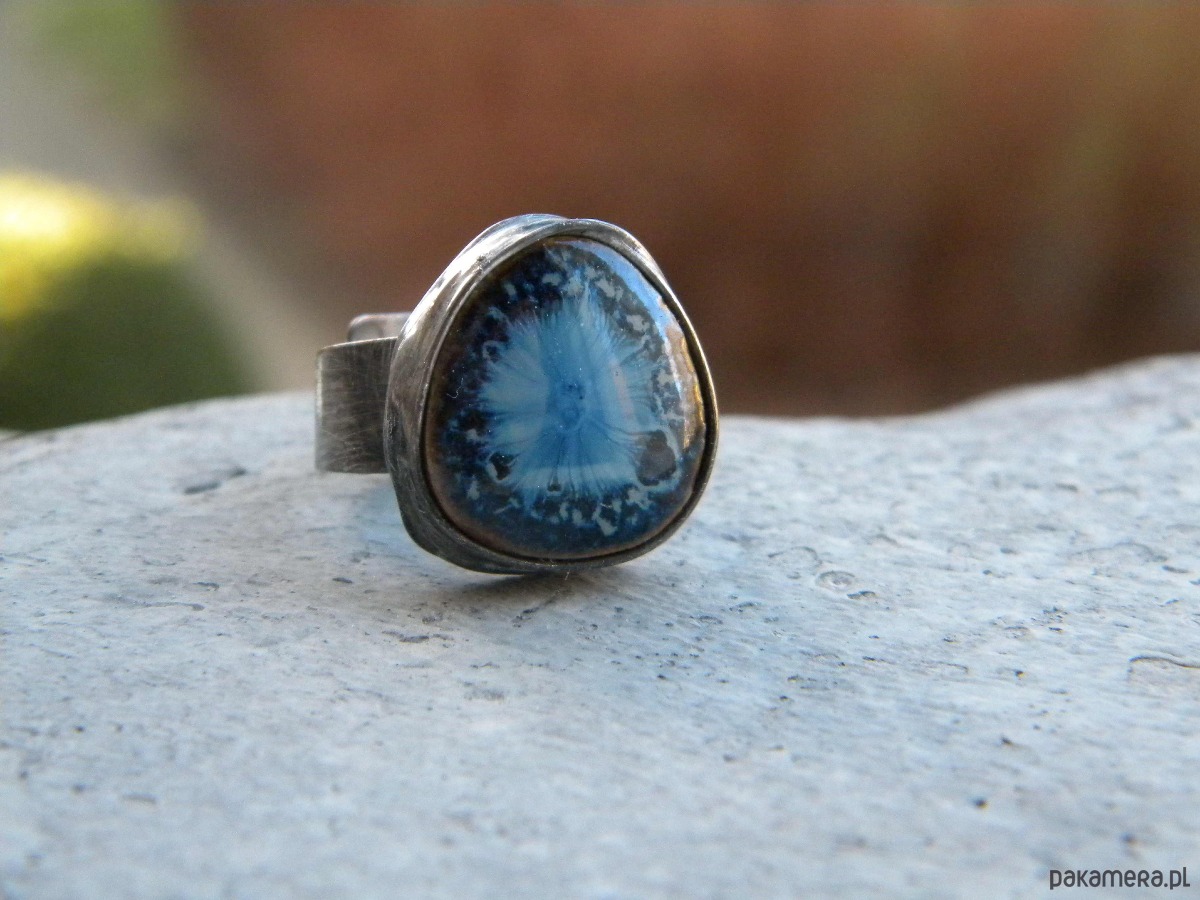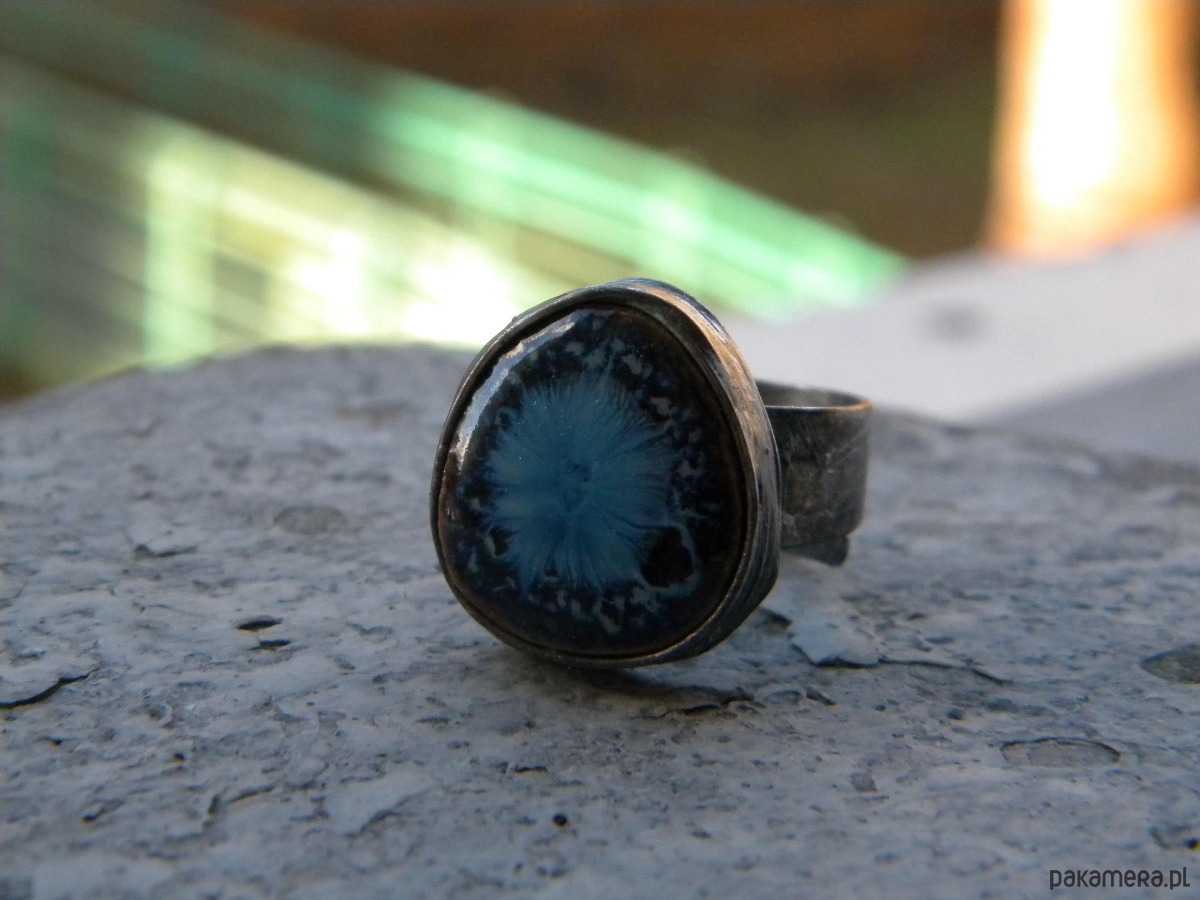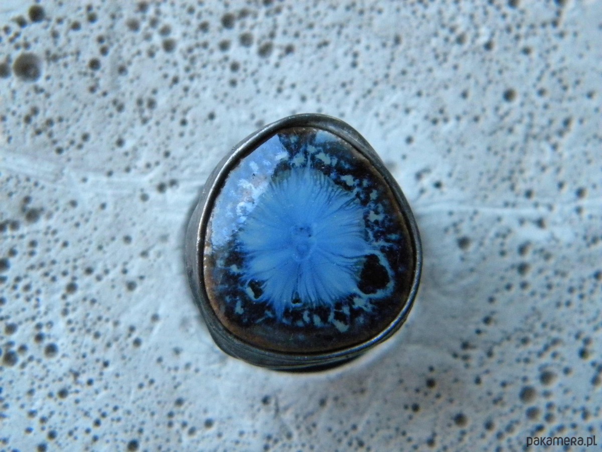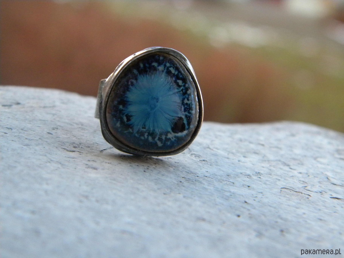 Pierścionek. Ceramika w ocynowanej miedzi.