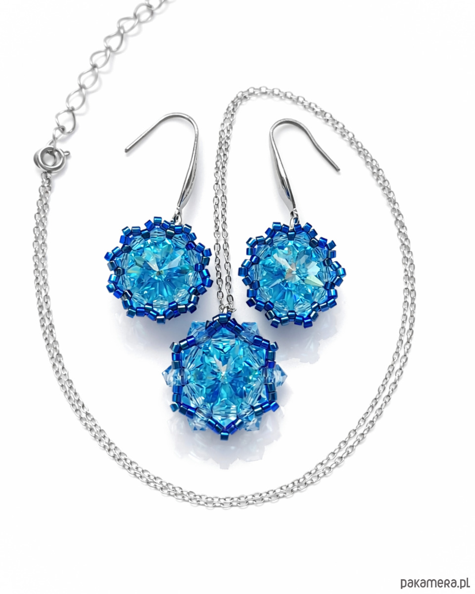 Błękitny Komplet Biżuterii "Aqua Bohemica Maxima" - Kolczyki i Naszyjnik