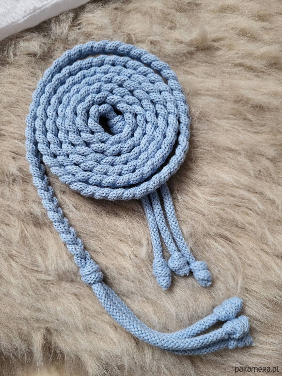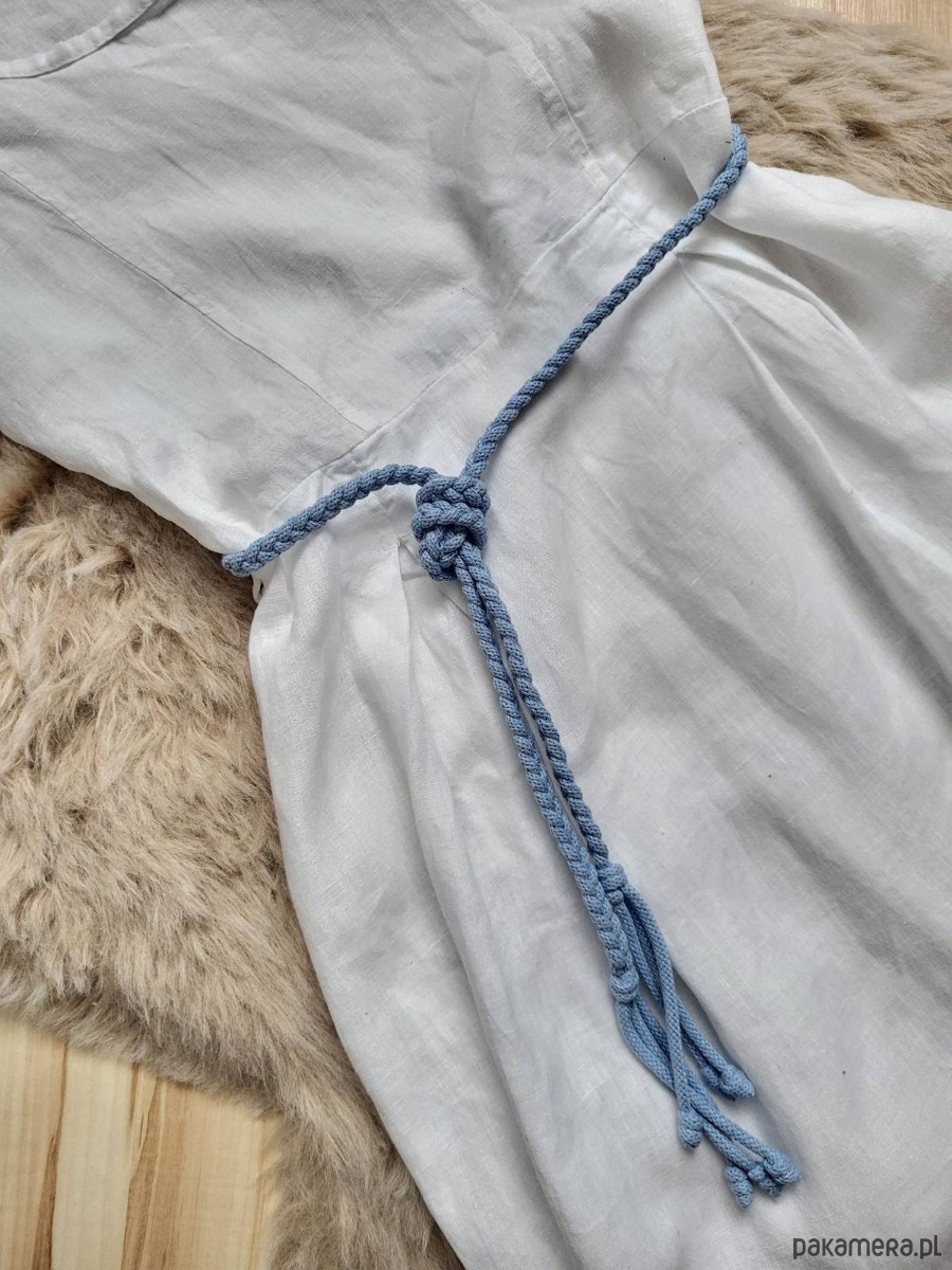 Błękitny Pasek do sukienki,tuniki wiązany cienki warkocz 130cm (r.36-38)