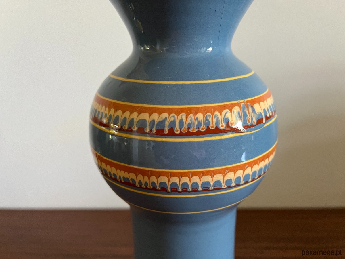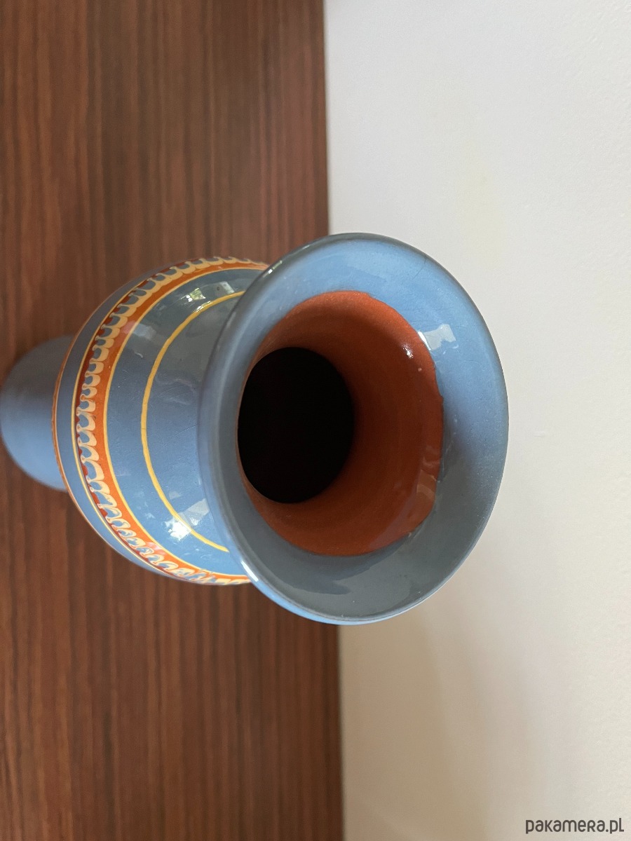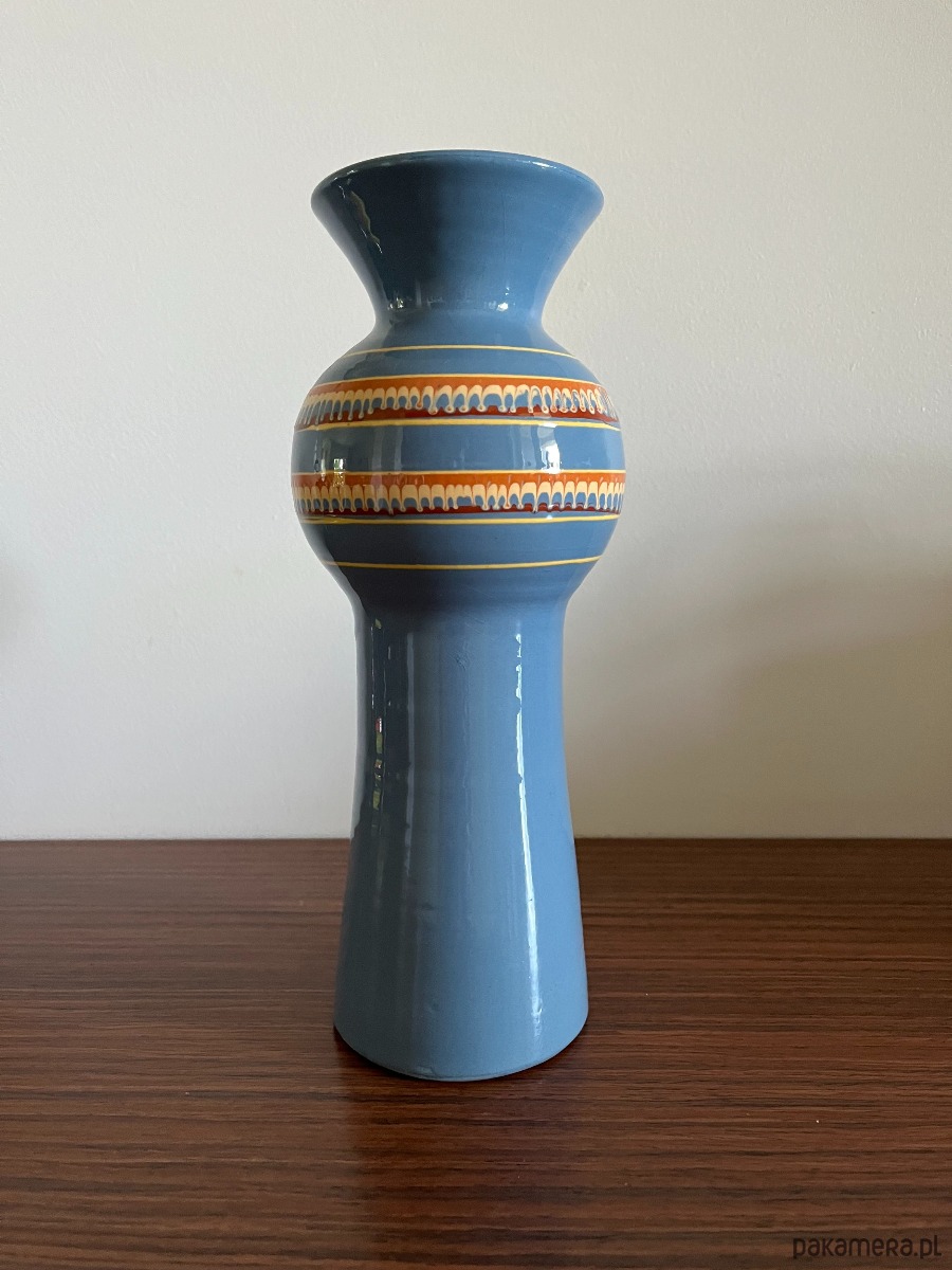 Bardzo ładny wazon w intensywnym niebieskim kolorze. Bardzo ciekawa forma.