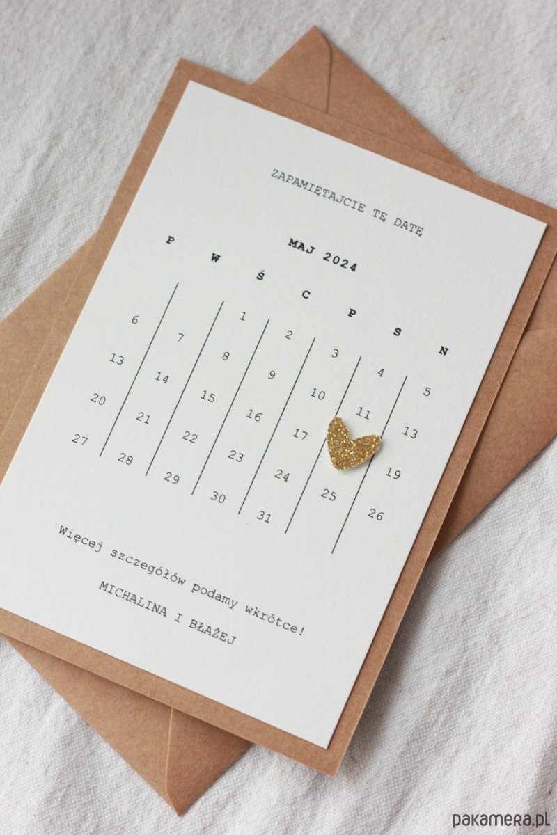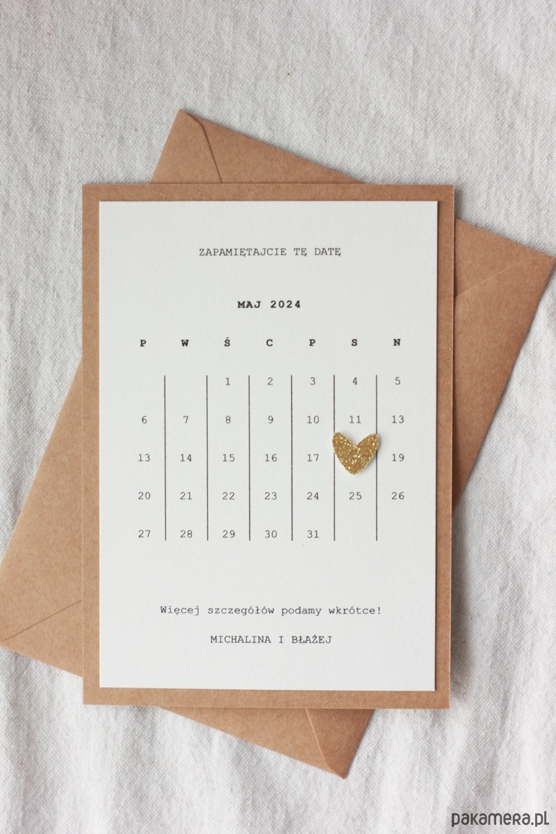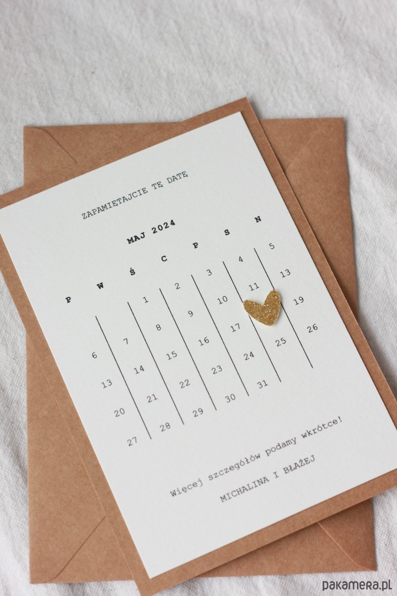Jednostronicowa karta "Save the date" dopasowana do naszej kolekcji "Bliżej".