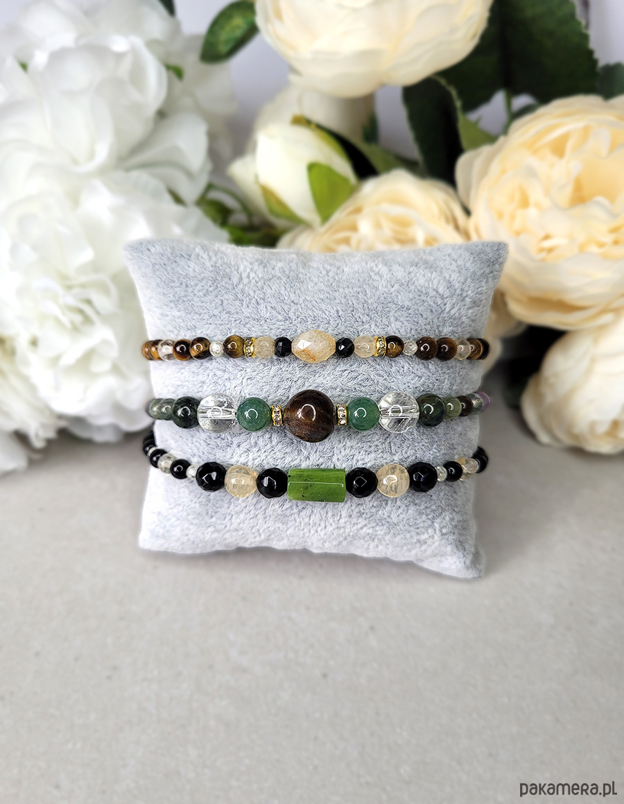 - Rodzaj kamienia: cyrkonia, cytryn, hematyt, turmalin, tygrysie oko