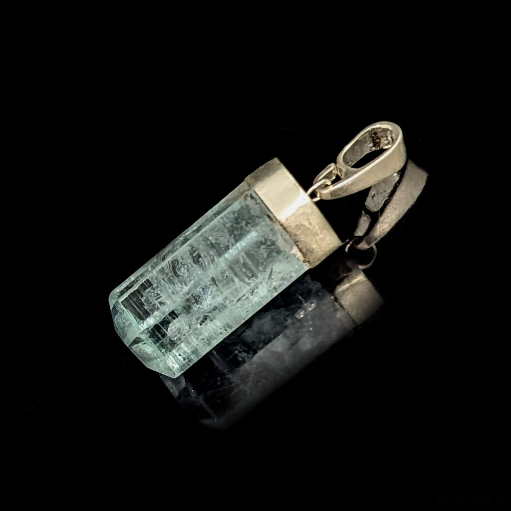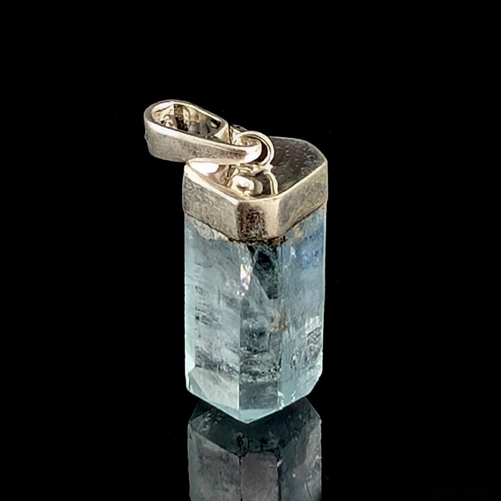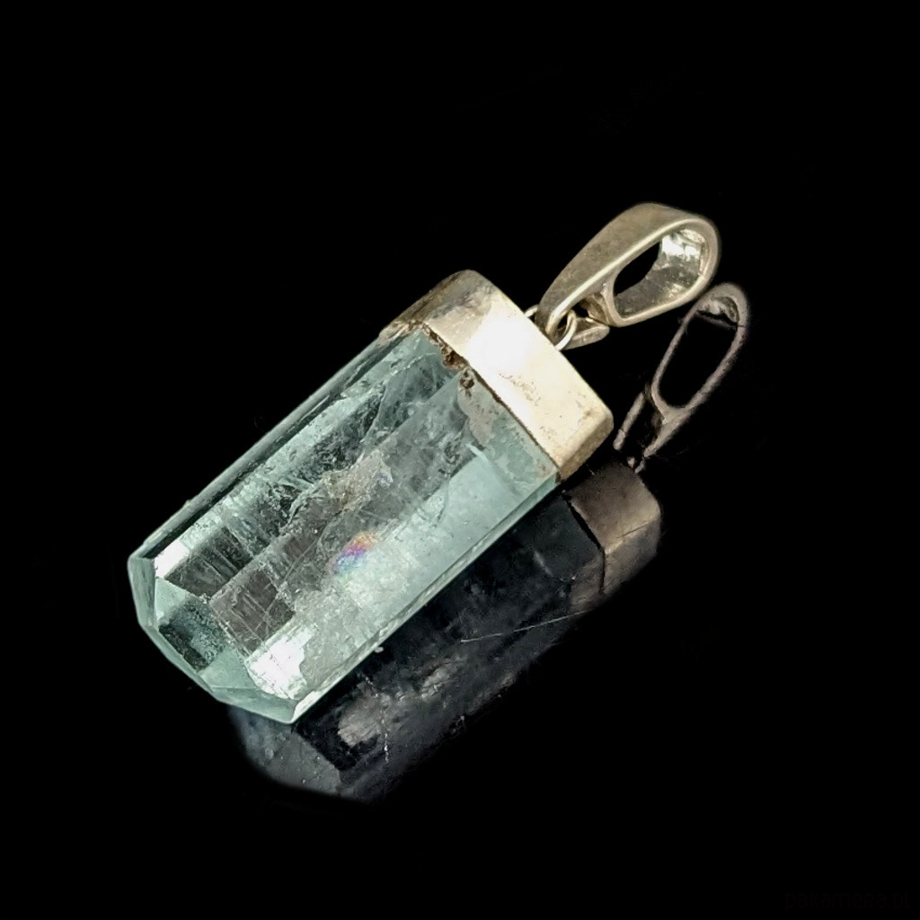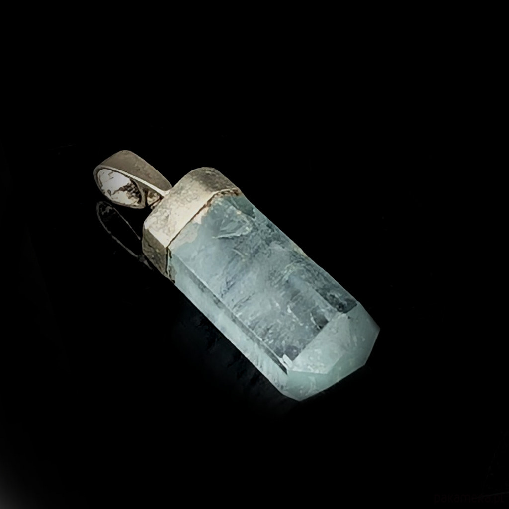 Piękny akwamaryn o ciekawym kształcie i cudnym kolorze morskiej toni, naturalne spękania na tafli, krawatka srebro próby 925. Wisior o wymiarach 20 x 11 mm. Z krawatką długość 32 mm. Waga 4 gramy. Polecam. Wisior zostanie zapakowany w ozdobne pudełeczko.