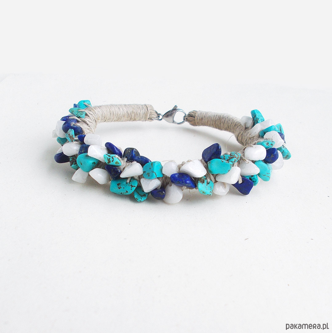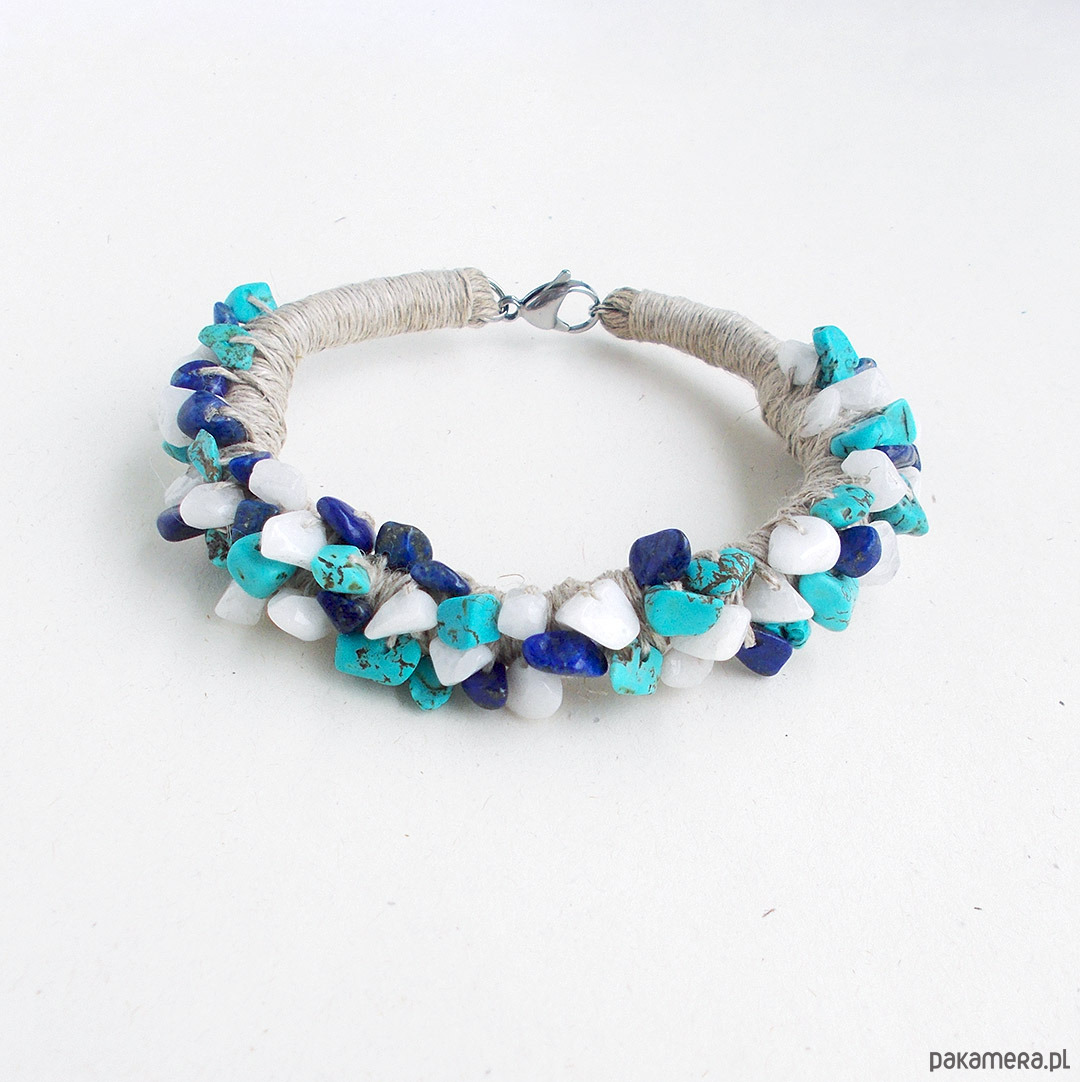 lapis lazuli, howlit turkusowy, kwarc lodowy, len naturalny, stal chirurgiczna