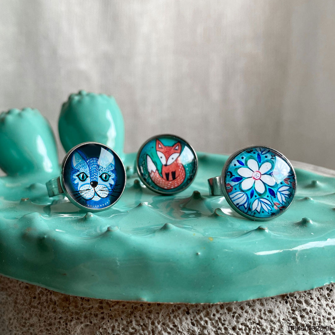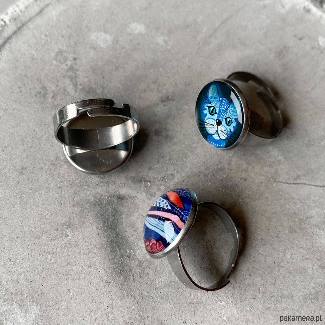 Pierścionek z detalem kolorowej, autorskiej ilustracji to wyrazisty akcent do każdej stylizacji. Pięknie nada się i na specjalne, romantyczne okazje, dodając każdej dziewczynie charakteru, energii i pewności siebie.