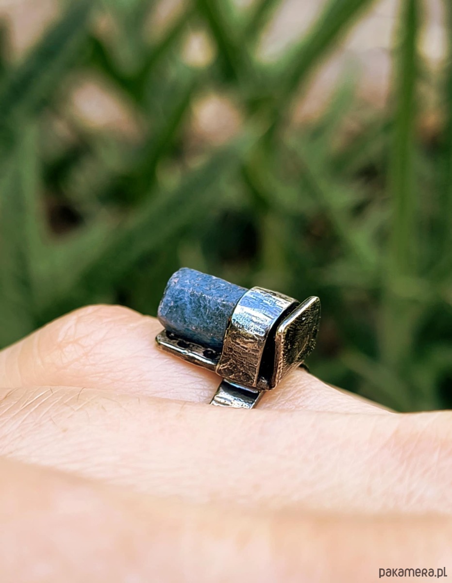 To surowa forma,której sercem jest naturalny kryształ szafiru.