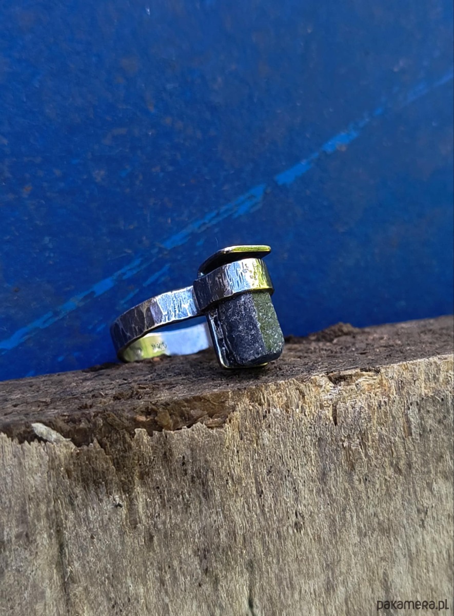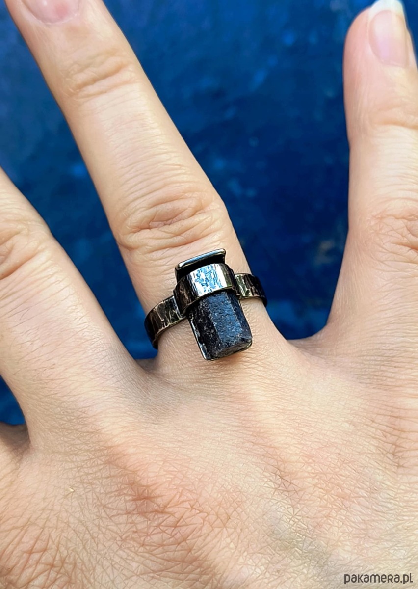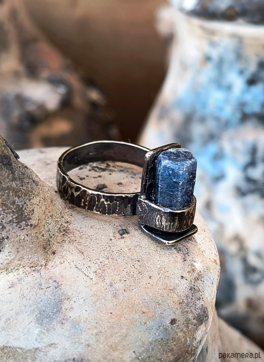To surowa forma,której sercem jest naturalny kryształ szafiru.