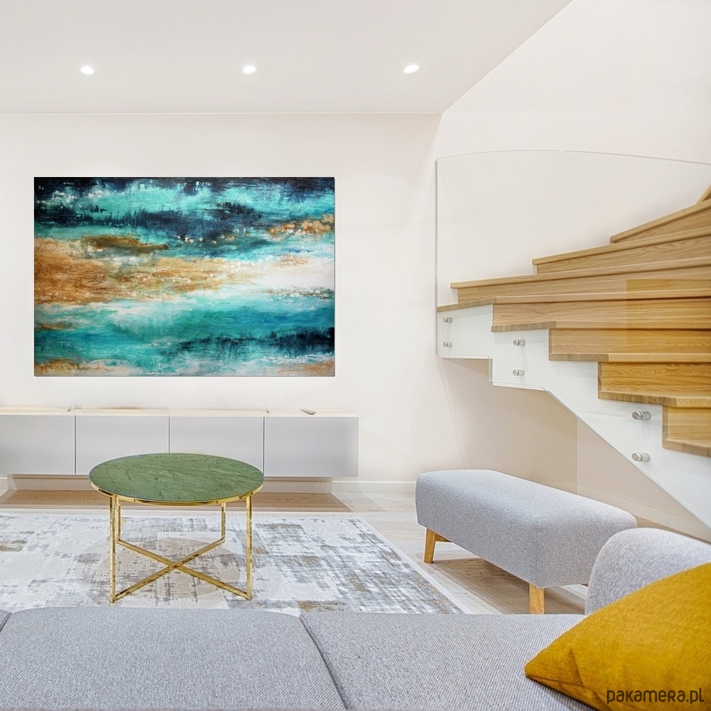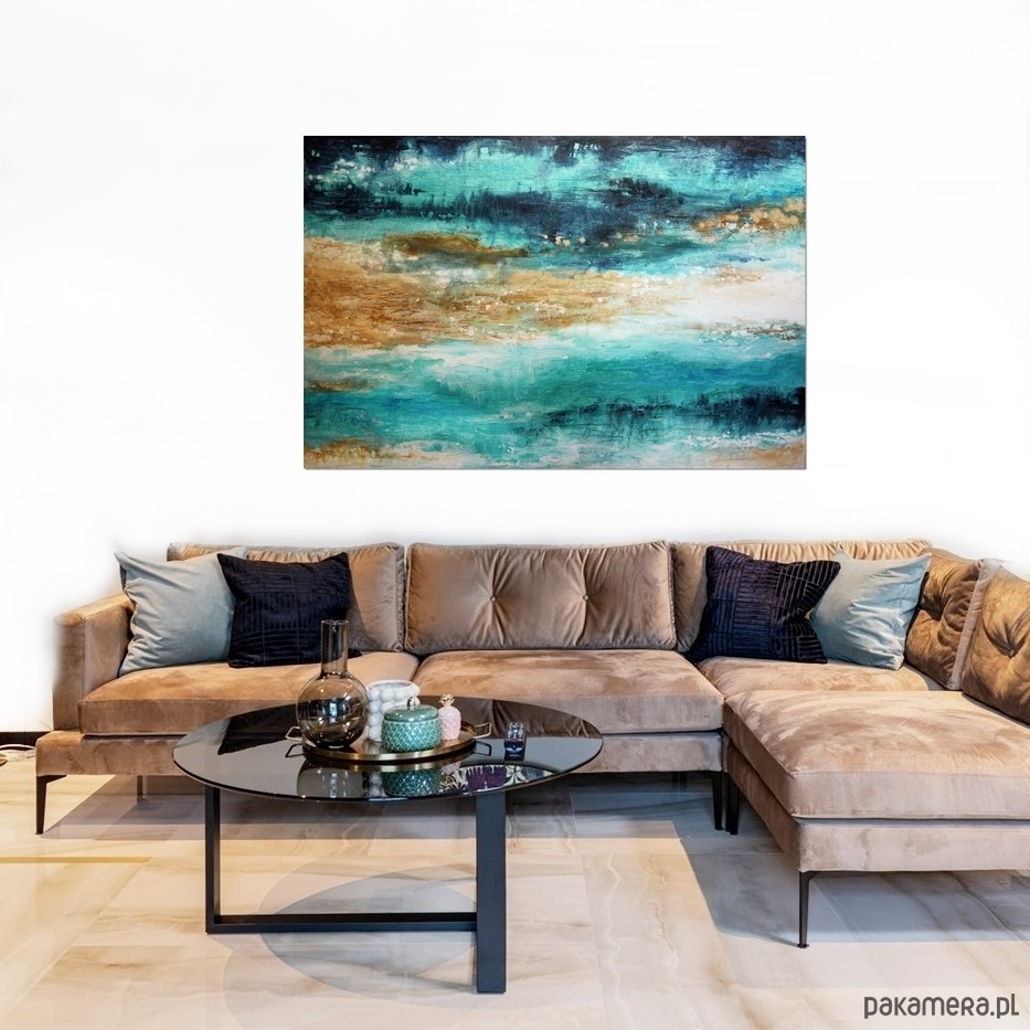 Blue lagoon 12 obraz abstrakcyjny nowoczesna abstrakcja do salonu 150x100 cm