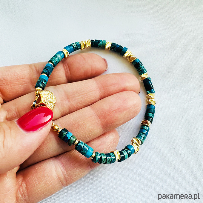 Bransoletka z delikatnych kamieni naturalnych Jaspisów Cesarskich w odcieniach turkusu.