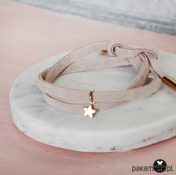 Bransoletka z naturalnej skóry zamszowej w odcieniu jasnego pudrowego różu.