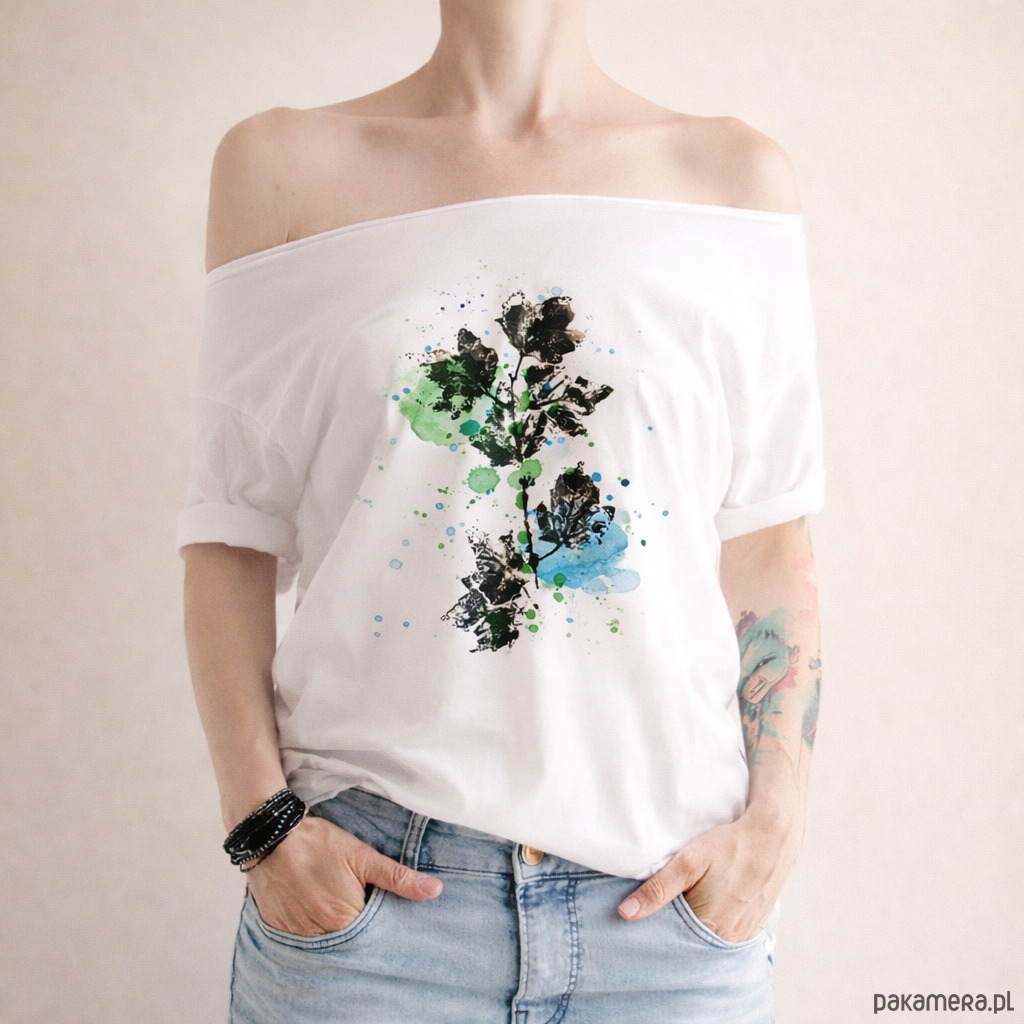 Nowość! Unikalna seria nadruków inspirowanych naturą – tworzona przy użyciu roślin, czarnej farby, wałków malarskich i kolorowych akwareli. Każdy projekt jest wyjątkowy i wyróżnia się z tłumu.