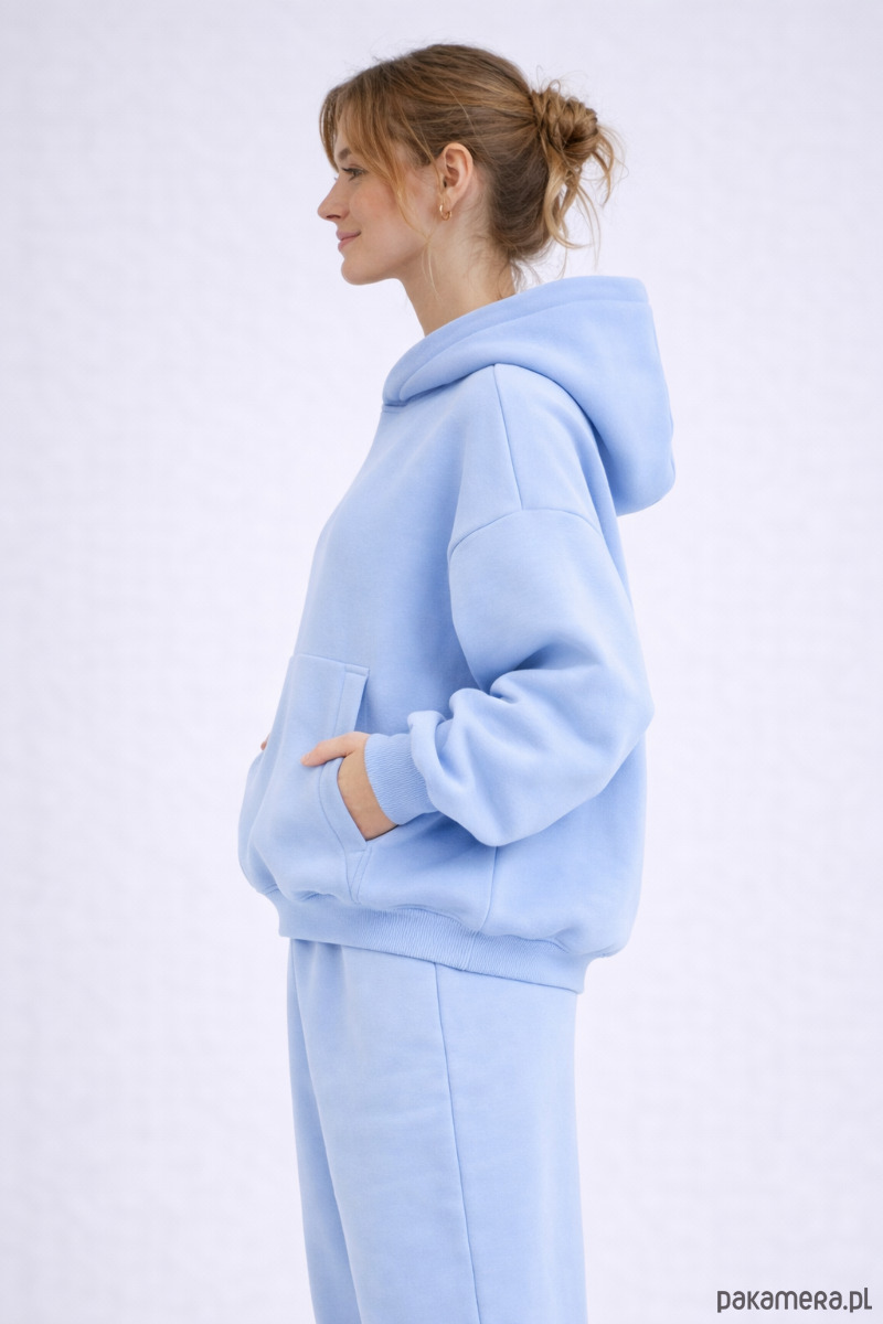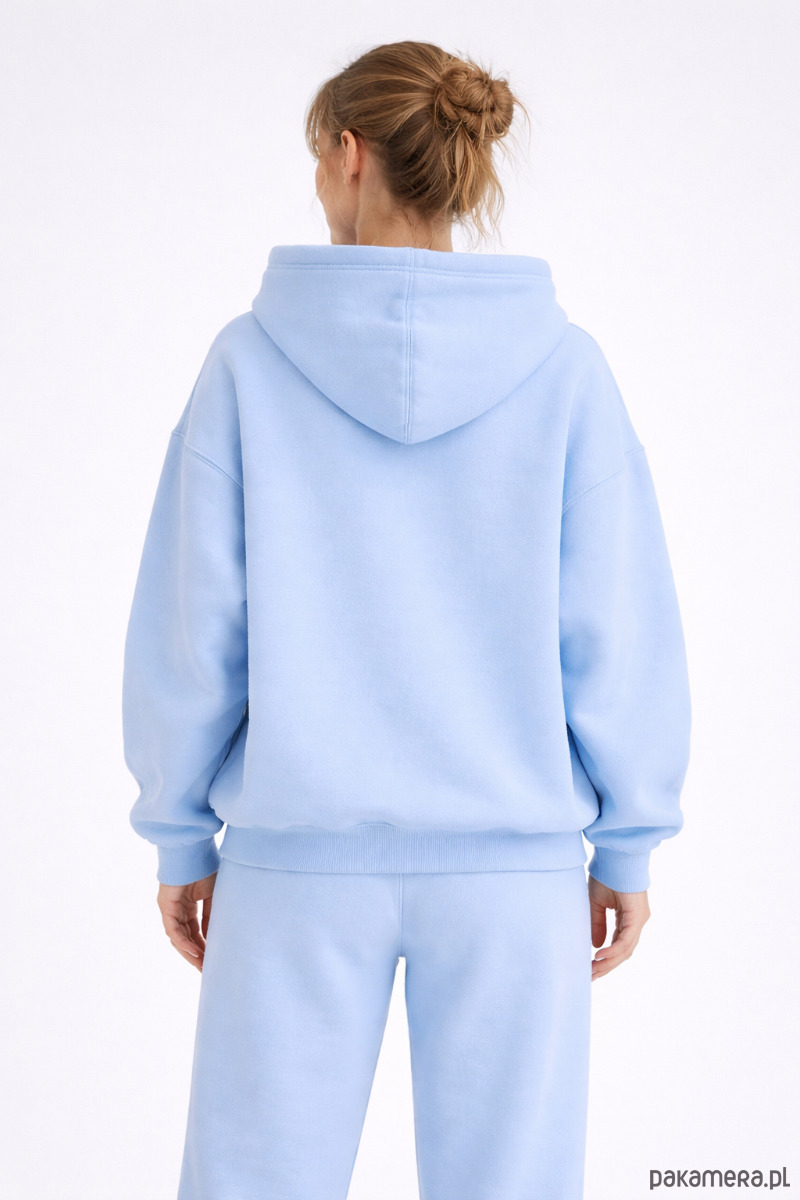 Bluza uszyta z wysokiej jakości materiału o gramaturze 330 GSM. Materiał jest mięsisty, miękki i od środka drapany („miś”), dzięki czemu zapewnia wyjątkowy komfort noszenia. Idealna bluza na co dzień – komfort, trwałość i minimalistyczny styl. Krój boxy – luźniejsza u góry, na dole wykończona ściągaczem oraz dodatkową regulacją ze stoperem w pasie, dzięki czemu możesz dopasować jej fason.