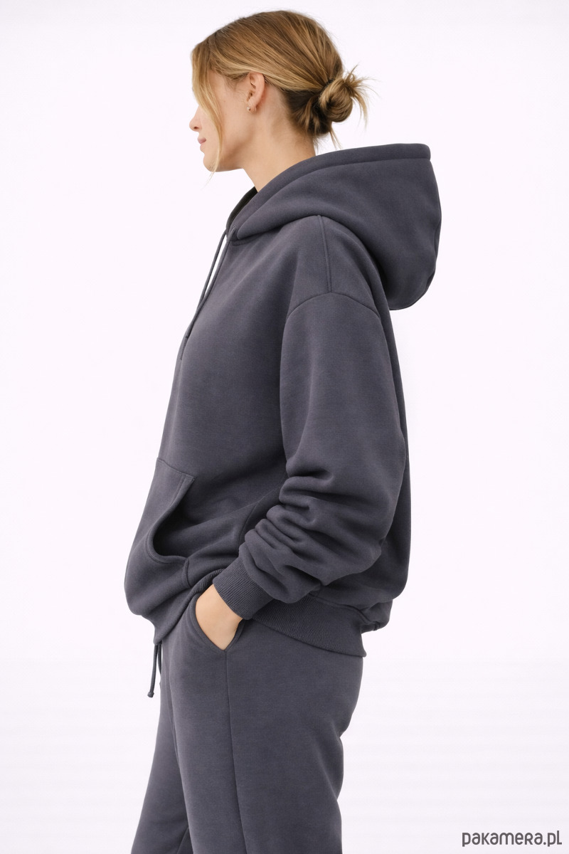 Bluza uszyta z wysokiej jakości materiału o gramaturze 330 GSM. Materiał jest mięsisty, miękki i od środka drapany („miś”), dzięki czemu zapewnia wyjątkowy komfort noszenia. Idealna bluza na co dzień – komfort, trwałość i minimalistyczny styl. Krój boxy – luźniejsza u góry, na dole wykończona ściągaczem oraz dodatkową regulacją ze stoperem w pasie, dzięki czemu możesz dopasować jej fason.