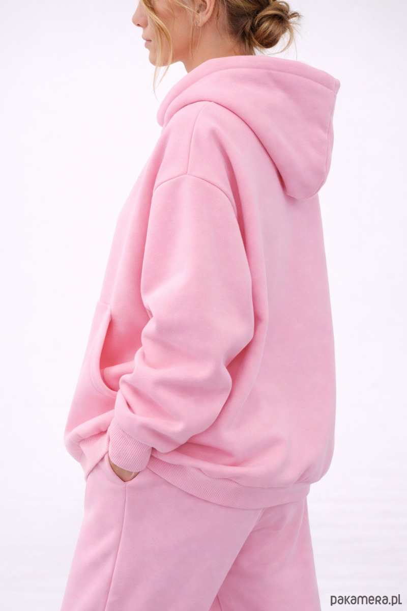 Bluza uszyta z wysokiej jakości materiału o gramaturze 330 GSM. Materiał jest mięsisty, miękki i od środka drapany („miś”), dzięki czemu zapewnia wyjątkowy komfort noszenia. Idealna bluza na co dzień – komfort, trwałość i minimalistyczny styl. Krój boxy – luźniejsza u góry, na dole wykończona ściągaczem oraz dodatkową regulacją ze stoperem w pasie, dzięki czemu możesz dopasować jej fason.