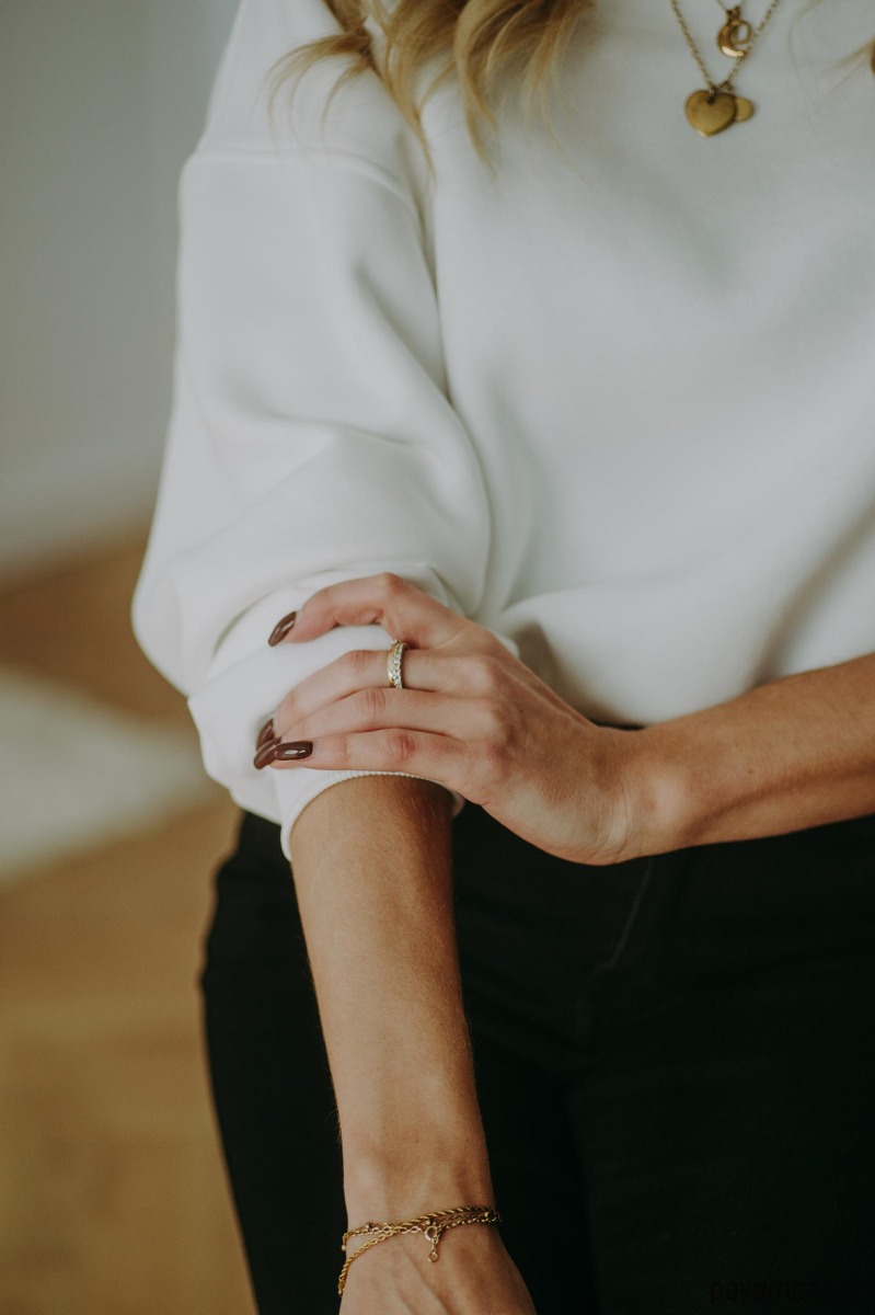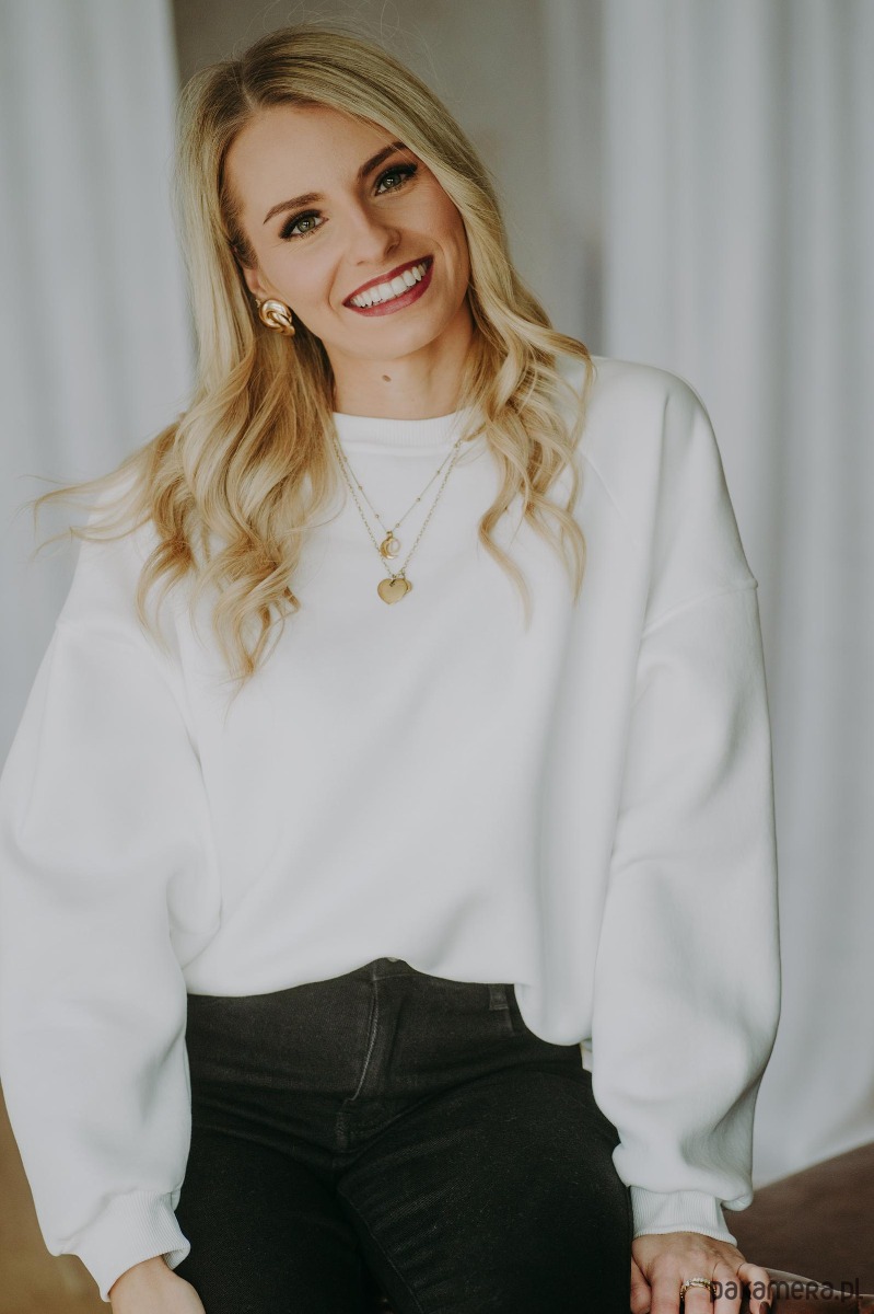 Ta bluza to kwintesencja stylu basic w najlepszym wydaniu. Krótki, oversize’owy krój nadaje jej swobodnego charakteru i sprawia, że świetnie układa się na sylwetce, zapewniając jednocześnie pełen komfort noszenia. Uszyta z wysokiej jakości miękkiej bawełny, jest idealnym wyborem zarówno na co dzień, jak i na bardziej wyjątkowe okazje, gdy stawiasz na wygodę połączoną z modnym lookiem. To właśnie ta prostota i uniwersalność sprawiają, że szybko stanie się jedną z ulubionych pozycji w Twojej szafie – świetnie komponując się z jeansami, spodniami dresowymi czy spódnicą.