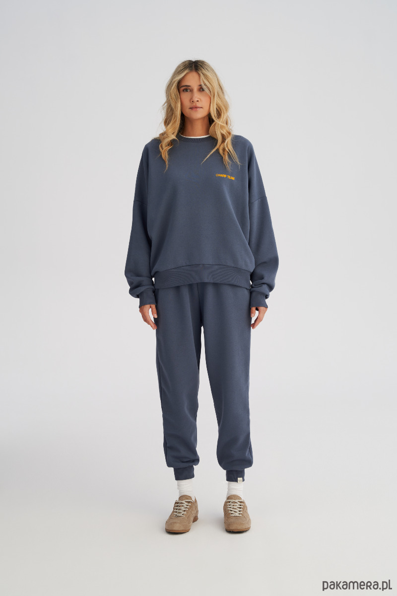 LOOSE FIT to bluza, która wyróżnia się charakterystyczną formą i lekkością stylu. To oversizowy model, który pokochasz za ponadczasową prostotę, wygodę i luz. Fason zwężający się ku dołowi, mocno obniżona linia ramion i szerokie rękawy tworzą swobodną linię, która świetnie dopasowuje się do każdej sylwetki. Dół wycięty w delikatny łuk - krótszy z przodu i dłuższy z tyłu - sprawia, że bluza układa się wyjątkowo naturalnie i podkreśla proporcje. Subtelne flockowe logo na piersi i mała metka przy ściągaczu dodają jej prostego, ale dopracowanego charakteru. Krój unisex prawia, że wygląda świetnie zarówno na kobietach, jak i mężczyznach. Świetnie prezentuje się w komplecie z dresowym dołem z tej samej kolekcji, ale równie dobrze sprawdzi się w bardziej wyszukanych stylizacjach, w zależności co do niego dobierzesz.
