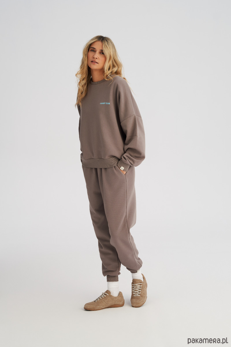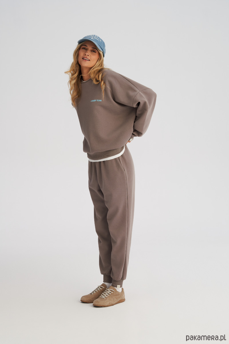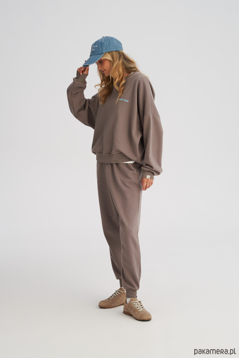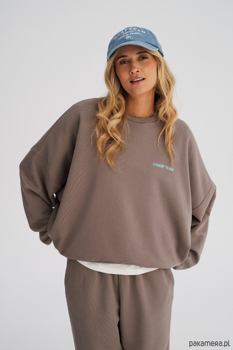 LOOSE FIT to bluza, która wyróżnia się charakterystyczną formą i lekkością stylu. To oversizowy model, który pokochasz za ponadczasową prostotę, wygodę i luz. Fason zwężający się ku dołowi, mocno obniżona linia ramion i szerokie rękawy tworzą swobodną linię, która świetnie dopasowuje się do każdej sylwetki. Dół wycięty w delikatny łuk - krótszy z przodu i dłuższy z tyłu - sprawia, że bluza układa się wyjątkowo naturalnie i podkreśla proporcje. Subtelne flockowe logo na piersi i mała metka przy ściągaczu dodają jej prostego, ale dopracowanego charakteru. Krój unisex prawia, że wygląda świetnie zarówno na kobietach, jak i mężczyznach. Świetnie prezentuje się w komplecie z dresowym dołem z tej samej kolekcji, ale równie dobrze sprawdzi się w bardziej wyszukanych stylizacjach, w zależności co do niego dobierzesz.