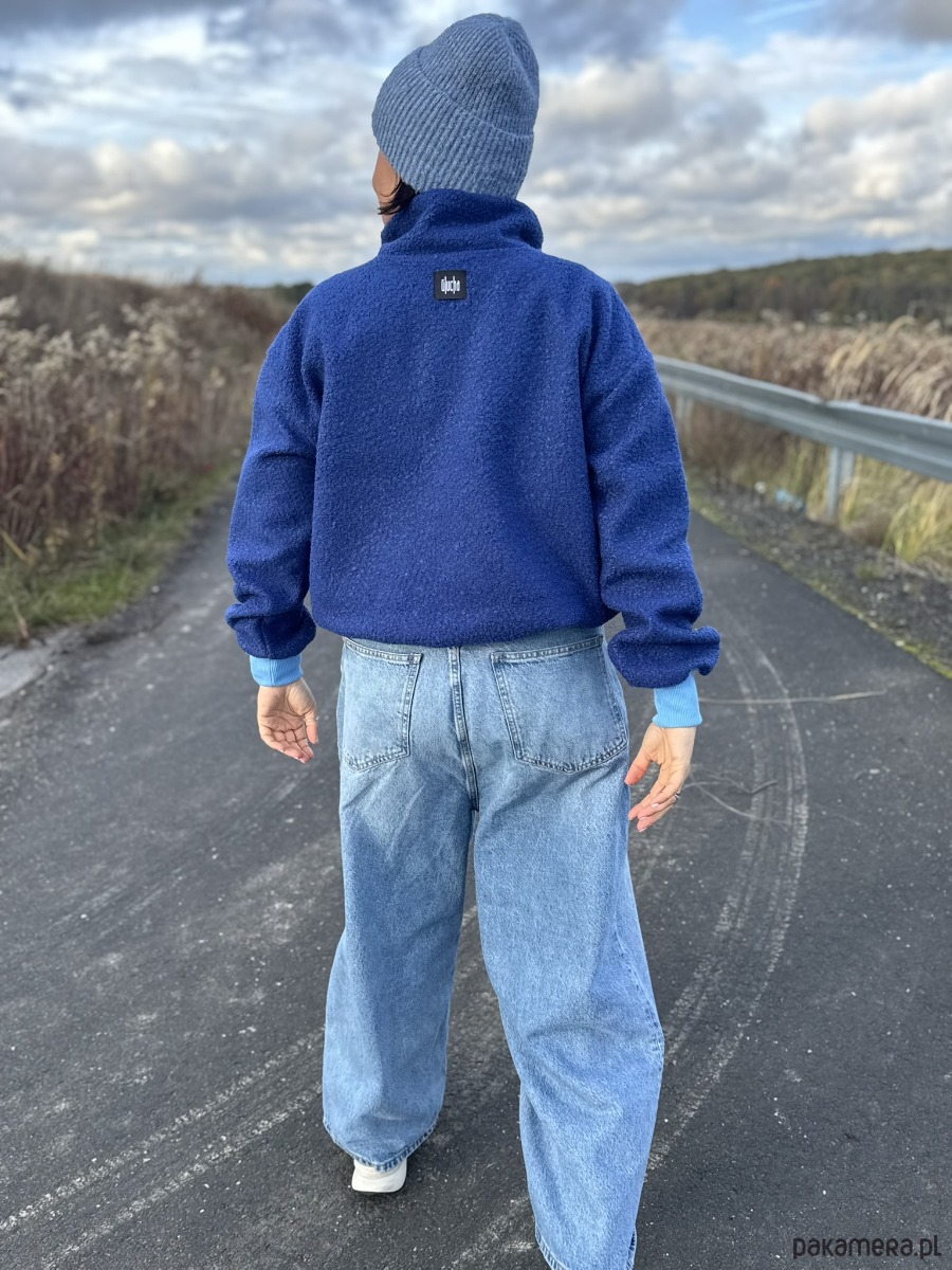 Miękka, ciepła i w kolorze niebieskim – ta bluza uszyta została z przyjemnego, bawełnianego bukle, które otuli Cię w chłodniejsze dni, a jednocześnie doda energii każdej stylizacji.