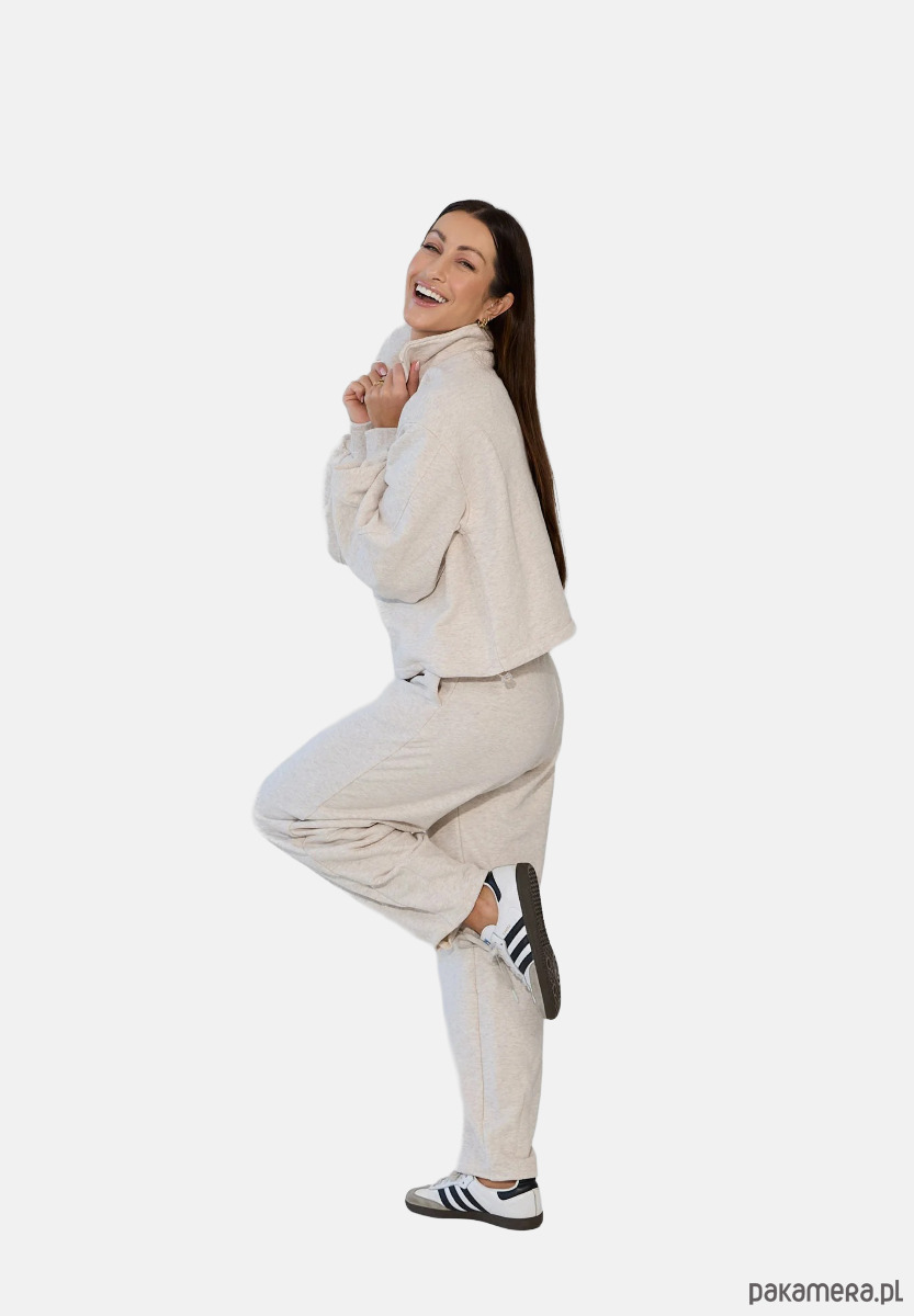 To minimalistyczna bluza, która nabiera charakteru za sprawą formy i kilku nieszablonowych rozwiązań, dlatego świetnie sprawdzi się zarówno na co dzień, jak i w bardziej stylowych, miejskich zestawach. My nosimy ją do naszych dżinsów Suzy, a gdy chcemy poczuć się jeszcze bardziej komfortowo zestawiamy z dresami Monica.