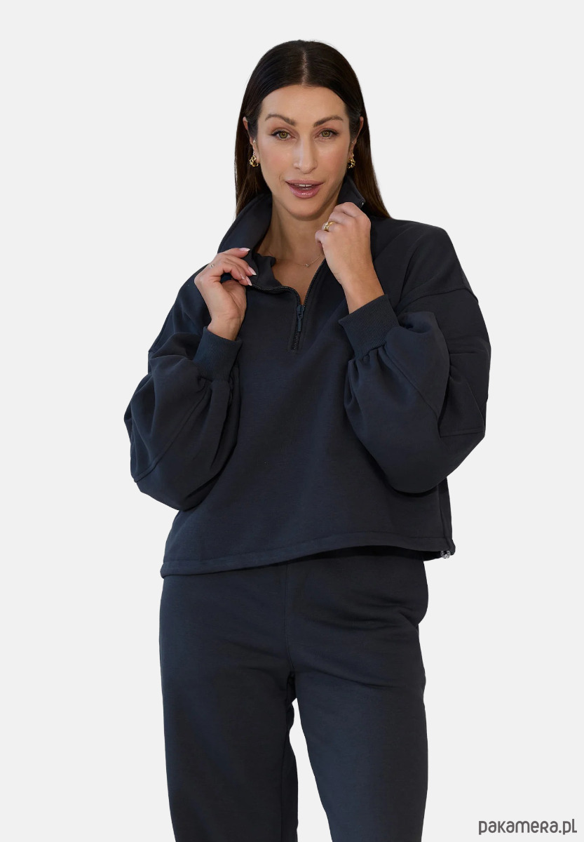 To minimalistyczna bluza, która nabiera charakteru za sprawą formy i kilku nieszablonowych rozwiązań, dlatego świetnie sprawdzi się zarówno na co dzień, jak i w bardziej stylowych, miejskich zestawach. My nosimy ją do naszych dżinsów Suzy, a gdy chcemy poczuć się jeszcze bardziej komfortowo zestawiamy z dresami Monica.