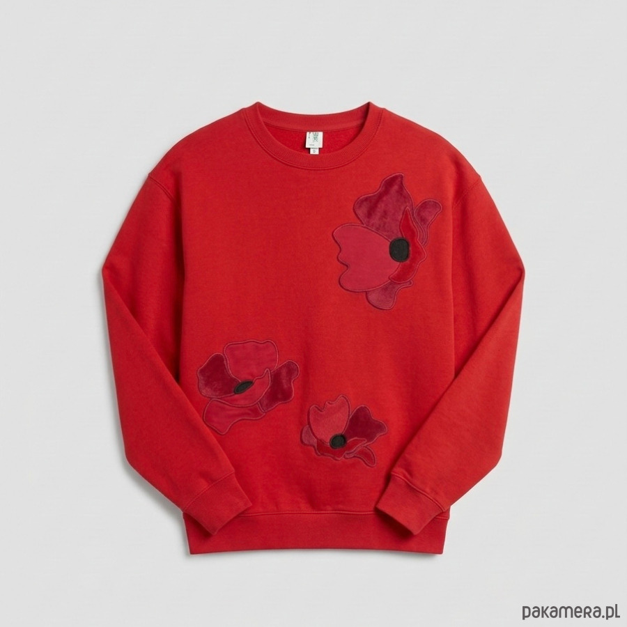 Model prezentowany na zdjęciach zachwyca czerwonym odcieniem, który fantastycznie podbija kolorystykę welurowej aplikacji. Zależy nam jednak na pełnym dopasowaniu do Twojego stylu, dlatego tę bluzę możesz spersonalizować i zamówić również w innych wariantach kolorystycznych, dostępnych z naszej rozwijanej listy podczas składania zamówienia.