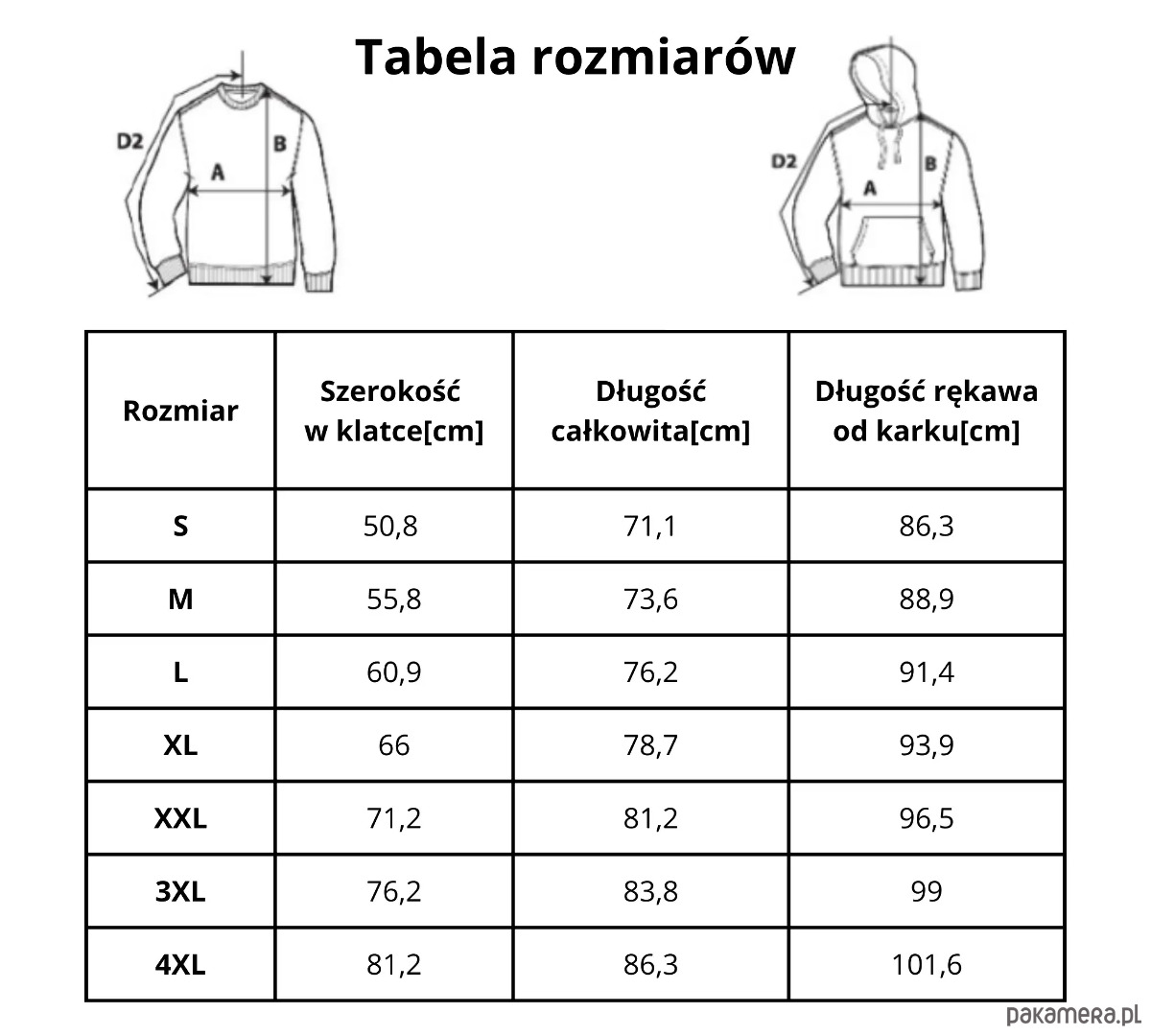 - Typ bluzy: bez kaptura, z kapturem