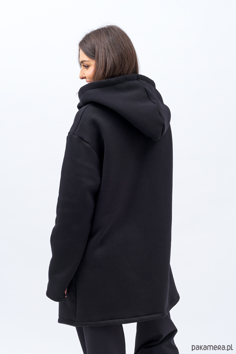 Długa asymetryczna bluza z tyłu jest nieco krótsza niż z przodu, taki krój wydłuża sylwetkę i jest bardzo wygodny w noszeniu. tutaj CZARNA z przepięknym wzorem w kapturze,przez co bluza staję się piękniejsza.(WZÓR MOŻE BYĆ RÓŻNY)