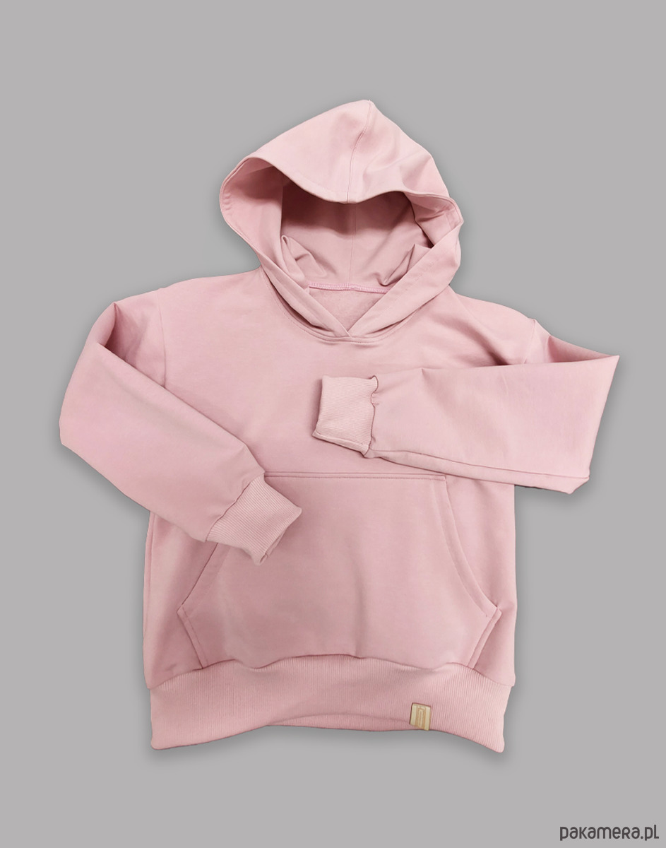 Bluza damska, klasyczna "Pudrowy róż + kieszeń kangurka"